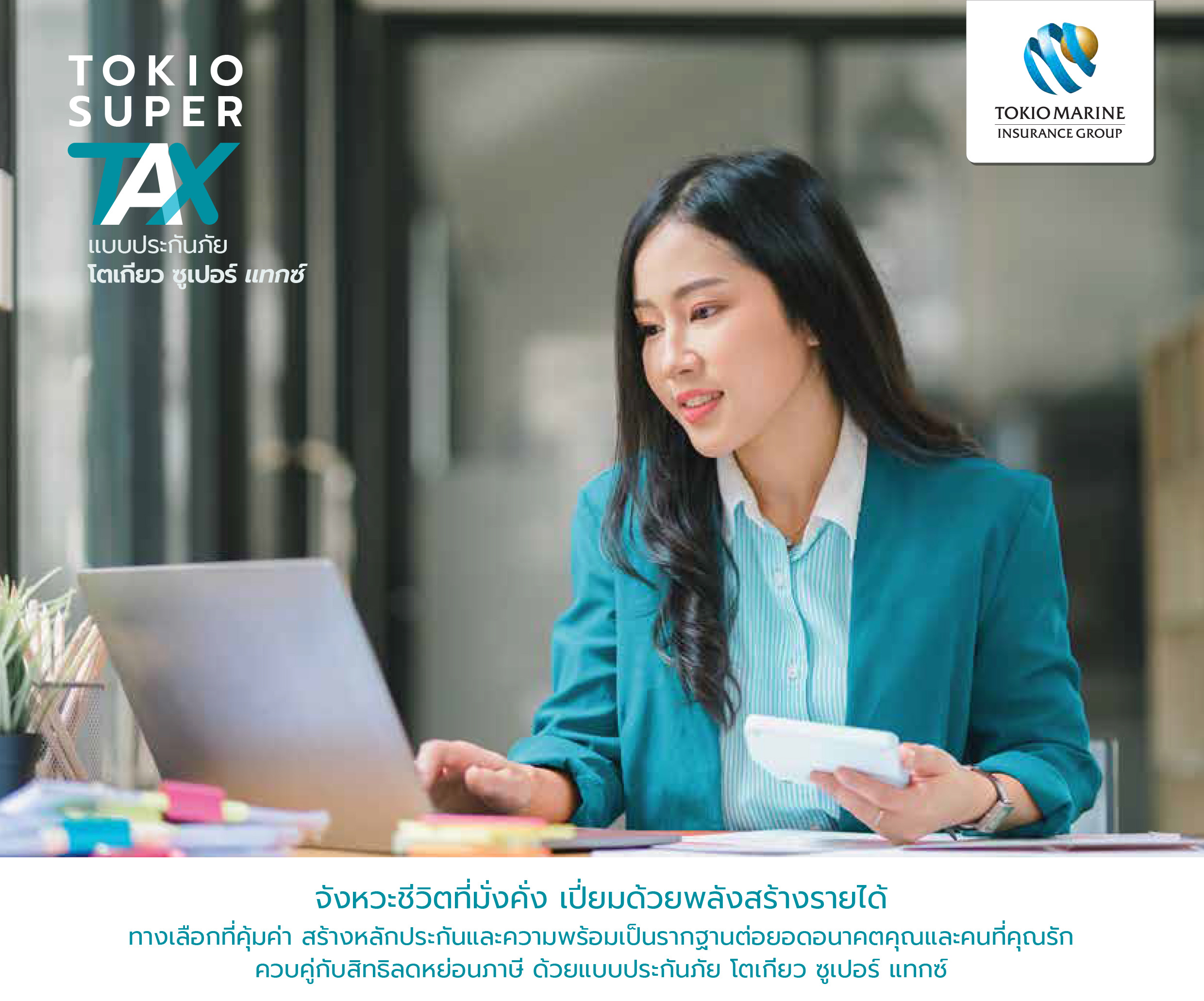 บมจ.โตเกียวมารีนประกันชีวิต (ประเทศไทย) เปิดตัวแบบประกันใหม่ล่าสุด "โตเกียว ซูเปอร์ แทกซ์" ที่ตอบโจทย์ผู้ต้องการออมเงินพร้อมรับสิทธิประโยชน์ทางภาษี โดยมีความโดดเด่น ดังนี้: