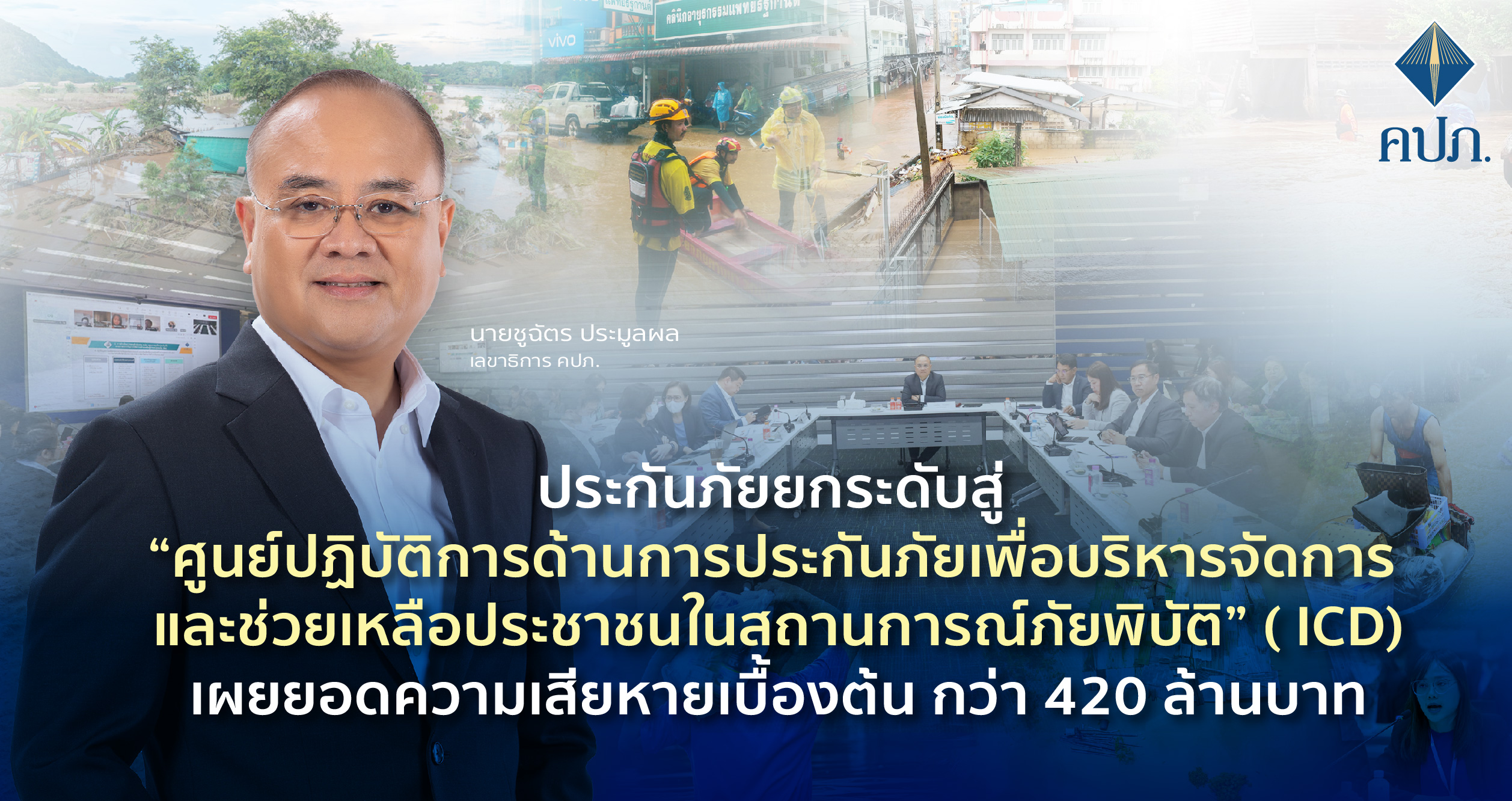 จากเหตุการณ์อุทกภัยในพื้นที่ภาคเหนือ และภาคตะวันออกเฉียงเหนือ ส่งผลให้ประชาชนได้รับความสูญเสียต่อชีวิตและทรัพย์สินเป็นจำนวนมาก สำนักงานคณะกรรมการกำกับและส่งเสริมการประกอบธุรกิจประกันภัย (สำนักงาน คปภ.) และภาคธุรกิจประกันภัยได้เร่งตรวจสอบและประเมินความเสียหาย พบว่ามูลค่าความเสียหายที่ทำประกันภัยรวมกว่า 420 ล้านบาท เป็นรถยนต์ที่เสียหายประมาณการค่าสินไหมทดแทน 408 ล้านบาท บ้านที่อยู่อาศัย อาคาร ร้านค้า เสียหาย 865 หลังคาเรือน ประมาณการค่าสินไหมทดแทนไม่ต่ำกว่า 10 ล้านบาท และข้าวนาปีที่ทำประกันภัย เสียหาย 126,104 ไร่ ซึ่งอยู่ระหว่างการประเมินค่าสินไหมทดแทน
