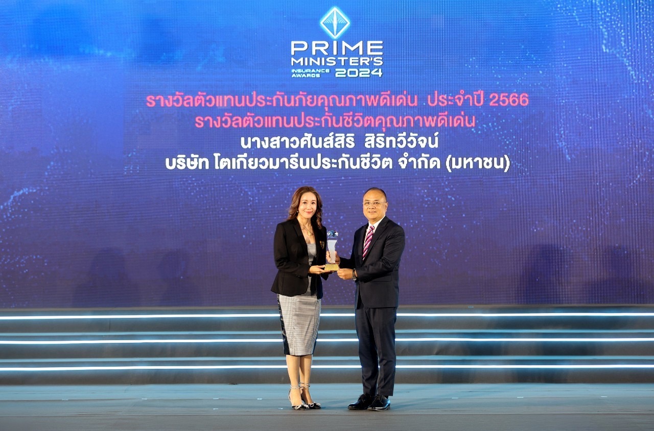 บมจ.โตเกียวมารีนประกันชีวิต (ประเทศไทย) นำโดย ดร.สมโพชน์ เกียรติไกรวัล ประธานที่ปรึกษาสำนักกรรมการผู้จัดการ และสายงานตัวแทน ร่วมแสดงความยินดีกับ น.ส.ศันส์สิริ สิริทวีวัจน์ รับรางวัลตัวแทนประกันภัยคุณภาพดีเด่นประจำปี 2566 รางวัลตัวแทนประกันชีวิตคุณภาพดีเด่น ซึ่งรับรางวัลต่อเนื่องปีนี้เป็นปีที่ 6