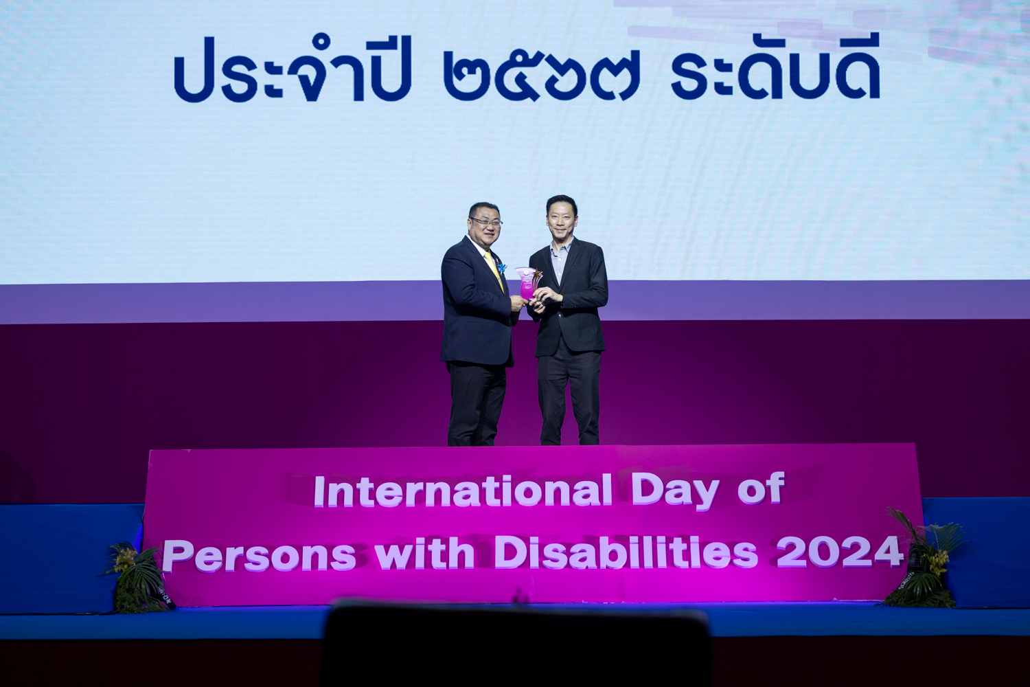 บมจ.กรุงไทย-แอกซ่า ประกันชีวิต นำโดย คุณพงศ์ธร วัธนนัย Head of Talent Acquisition & Management and Culture (คนขวา) เข้ารับโล่ประกาศเกียรติคุณรางวัลองค์กรที่สนับสนุนการจ้างงานคนพิการ ประจำปี 2567 “ระดับดี” เนื่องในวันคนพิการสากล ประจำปี 2567 จากกรมส่งเสริมและพัฒนาคุณภาพชีวิตคนพิการ กระทรวงการพัฒนาสังคมและความมั่นคงของมนุษย์ โดยได้รับเกียรติจาก คุณโชคชัย วิเชียรชัยยะ อธิบดีกรมส่งเสริมและพัฒนาคุณภาพชีวิตคนพิการ (คนซ้าย) เป็นประธานในการมอบรางวัล เพื่อเชิดชูเกียรติองค์กรที่มุ่งมั่นในการสร้างโอกาสการทำงานให้แก่คนพิการอย่างต่อเนื่อง และพร้อมส่งเสริมการมีส่วนร่วมในสังคมอย่างเท่าเทียม