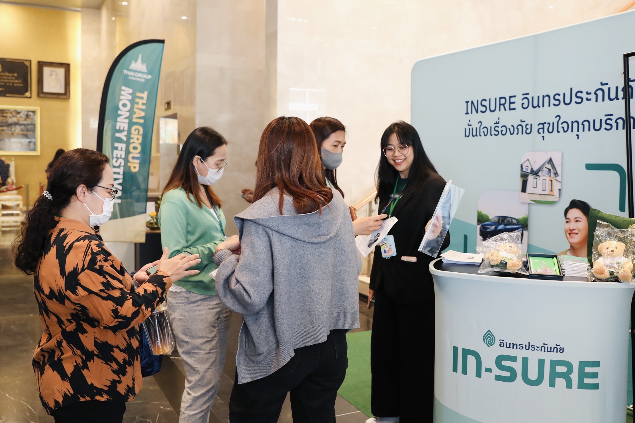 บริษัท ไทยกรุ๊ป โฮลดิ้งส์ จำกัด (มหาชน) กลุ่มธุรกิจประกันและการเงินในเครือทีซีซี จัดงานมหกรรมการเงิน Thai Group Money Festival 2024 ผนึกกำลังพันธมิตรจากกลุ่มบริษัทในเครือทีซีซี ธนาคารและสถาบันการเงิน คัดสรรผลิตภัณฑ์ทางการเงิน ประกัน รวมถึงสินค้าและบริการต่างๆ พร้อมโปรโมชันและสิทธิพิเศษมามอบให้กับลูกค้าผู้ที่สนใจทำประกันภัยหรือใช้บริการภายในงาน ซึ่งจัดขึ้นระหว่างวันที่ 17-18 ธันวาคม 2567 ที่ผ่านมา โดยมี นายโชติพัฒน์ พีชานนท์ ประธานกรรมการบริหาร และผู้บริหารระดับสูงของไทยกรุ๊ป ร่วมเยี่ยมชมบูท ณ บริเวณ Lobby อาคารไทยกรุ๊ป สำนักงานใหญ่ ถนนสีลม