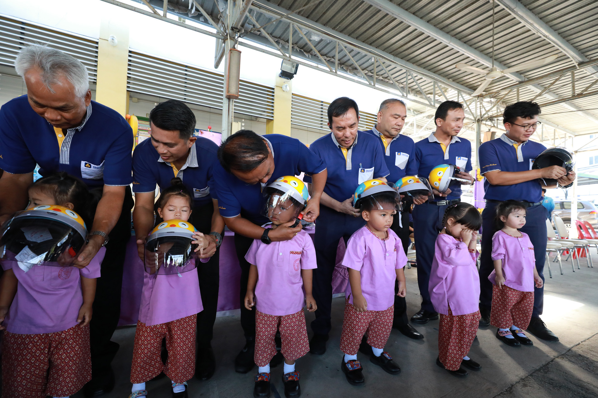 ทั้งนี้ บริษัทฯ ได้ดำเนินภารกิจด้านรณรงค์การสร้างความปลอดภัยบนท้องถนนแก่กลุ่มเด็กและเยาวชนมาอย่างต่อเนื่อง ด้วยความตระหนักถึงปัญหาอุบัติเหตุทางถนน ที่ก่อให้เกิดความสูญเสียหลายประการตามมาอย่างไม่รู้จบ จึงได้จัดตั้งโครงการ “ศูนย์พัฒนาเด็กเล็กต้นแบบสวมหมวกนิรภัย 100%” ขึ้น โดยในช่วงปีที่ผ่านมา บริษัทฯ ได้ดำเนินการรณรงค์ภายในศูนย์พัฒนาเด็กเล็กหลายจังหวัดทั่วประเทศ เพื่อสร้างต้นแบบสถานศึกษาที่ช่วยบ่มเพาะเมล็ดพันธุ์แห่งความปลอดภัย ให้เติบโตเป็นบุคลากรที่มีความรับผิดชอบต่อตนเองและสังคม อันเป็นการสร้างรากฐานวัฒนธรรมความปลอดภัยบนท้องถนนอย่างเป็นรูปธรรม