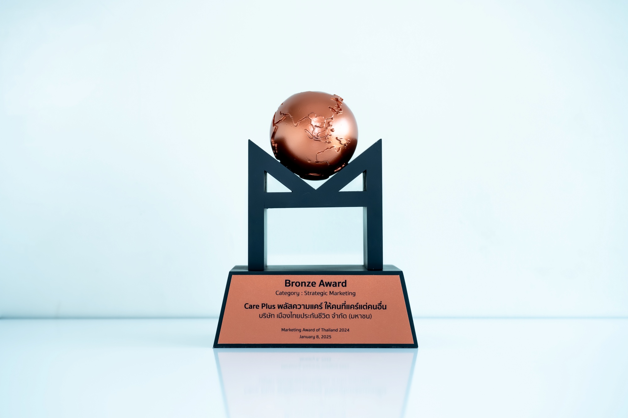 เมืองไทยประกันชีวิต สุดภาคภูมิใจ แคมเปญ “Care Plus พลัสความแคร์ให้คนที่แคร์แต่คนอื่น” คว้ารางวัลสุดยอดแคมเปญการตลาด หมวดแคมเปญการตลาดที่มีความเป็นเลิศด้านกลยุทธ์ ระดับ Bronze Award จากเวที Marketing Award of Thailand 2024 ตอกย้ำความโดดเด่นที่ตอบโจทย์ทั้งความคุ้มครองค่ารักษาโรคมะเร็ง และไตวายเรื้อรังที่คุณเลือกได้ คลายกังวลเรื่องค่ารักษาพยาบาล พร้อมช่วยให้เข้าถึงการรักษาด้วยนวัตกรรมที่ทันสมัย