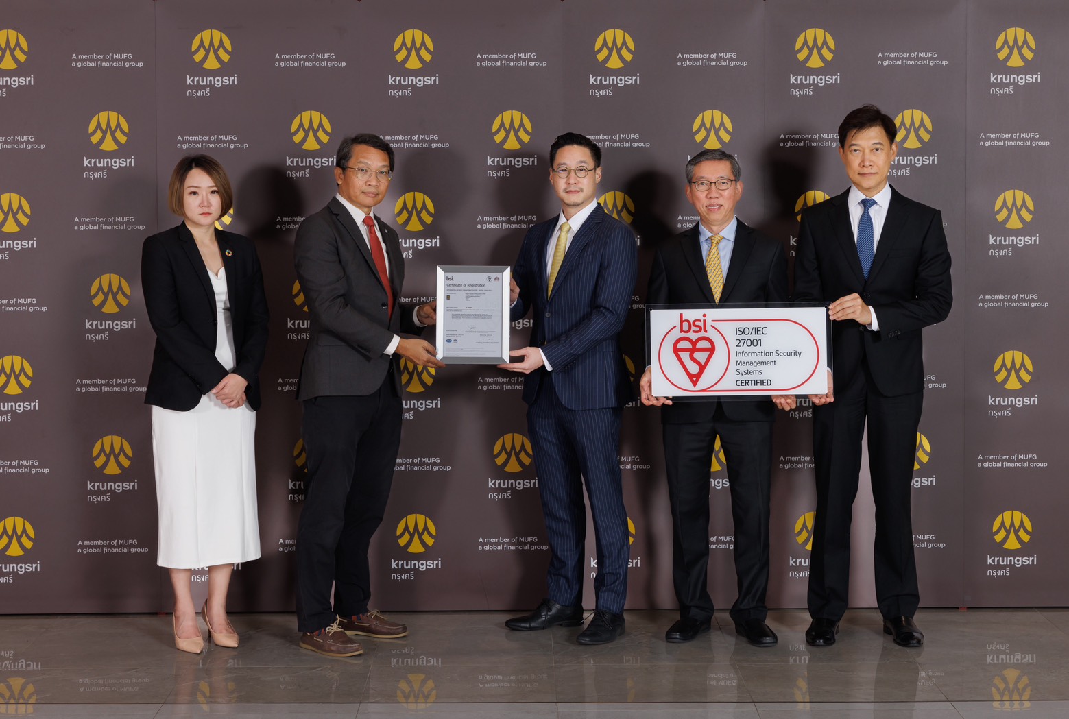 กรุงศรี (ธนาคารกรุงศรีอยุธยา จำกัด (มหาชน)) นำโดย นายพชร วันรัตน์เศรษฐ (กลาง) ประธานคณะเจ้าหน้าที่ด้านเทคโนโลยีสารสนเทศ และนายวิโรจน์ ชื่นรัตนกุล (ที่ 2 จากขวา) ประธานคณะเจ้าหน้าที่ด้านปฏิบัติการ รับมอบใบรับรองมาตรฐานระดับนานาชาติ ISO/IEC 27001:2022 เวอร์ชันล่าสุด จากบริษัท บีเอสไอ กรุ๊ป (ประเทศไทย) จำกัด สถาบันรับรองมาตรฐานแห่งชาติของประเทศอังกฤษ (The British Standards Institution-BSI) สำหรับระบบบริหารจัดการความมั่นคงปลอดภัยสารสนเทศ ด้านการจัดการและการปฏิบัติการของศูนย์คอมพิวเตอร์ รวมถึงระบบเครือข่ายการการโอนเงินมูลค่าสูงทางอิเล็กทรอนิกส์ (BAHTNET) ซึ่งเชื่อมโยงระหว่างธนาคารแห่งประเทศไทย (ธปท.) และระบบการหักบัญชีเช็คด้วยภาพเช็คและระบบการจัดการภาพเช็ค (ICS) ซึ่งเชื่อมโยงระหว่างบริษัท เนชั่นแนล ไอทีเอ็มเอ๊กซ์ จำกัด (NITMX) สะท้อนให้เห็นว่าระบบสารสนเทศของธนาคารมีระบบการควบคุมภายในที่ดี มีประสิทธิภาพ และมั่นคงปลอดภัย สร้างความเชื่อมั่นให้กับผู้ใช้บริการในการทำธุรกรรมการเงิน ทั้งยังแสดงให้เห็นถึงศักยภาพทางเทคโนโลยีของธนาคารที่ได้รับมาตรฐานระดับโลก และพร้อมเติบโตในระดับอาเซียน