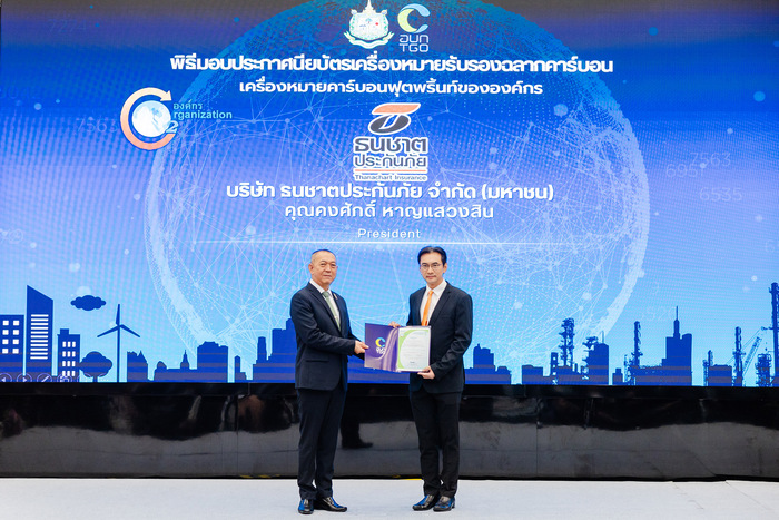 ธนชาตประกันภัย เดินหน้าสู่เป้าหมายผู้นำธุรกิจประกันภัยเพื่อความยั่งยืน รับประกาศนียบัตรเครื่องหมายคาร์บอนฟุตพริ้นท์ขององค์กร (Carbon Footprint for Organization : CFO) จากองค์การบริหารจัดการก๊าซเรือนกระจก (องค์การมหาชน) สะท้อนความมุ่งมั่นนโยบายจัดการและลดการปล่อยก๊าซเรือนกระจกตลอดเส้นทางธุรกิจ สร้างสังคมคาร์บอนต่ำและร่วมเปลี่ยนโลกสู่ความยั่งยืน