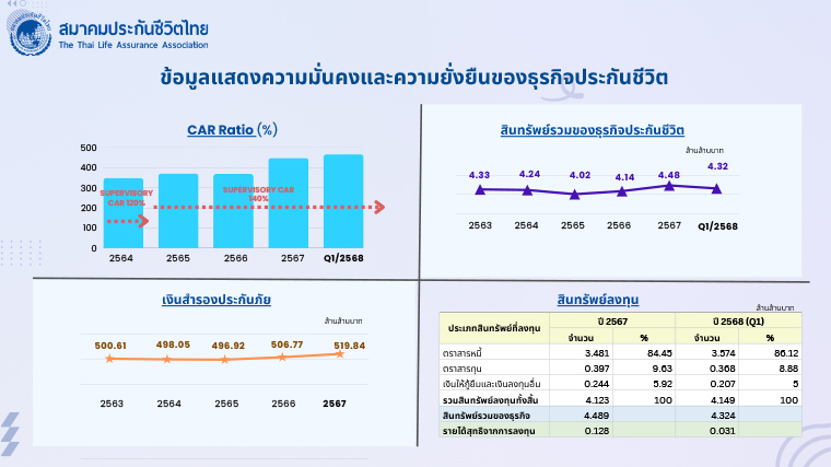 นอกจากนี้ ภาคธุรกิจประกันชีวิตยังคงเดินหน้ายกระดับขีดความสามารถในการแข่งขันผ่านการพัฒนาเทคโนโลยี เช่น Big Data, AI และ Data Analytics เพื่อเพิ่มประสิทธิภาพในการดำเนินงาน สนับสนุนการพัฒนาผลิตภัณฑ์ให้ตรงความต้องการของผู้บริโภค และเพิ่มความแม่นยำในกระบวนการต่าง ๆ อาทิ การเสนอขาย การพิจารณารับประกันภัย การพิจารณาสินไหม ตลอดจนการให้บริการหลังการขาย การวิเคราะห์พฤติกรรมผู้บริโภคให้แม่นยำมากขึ้น เพื่อยกระดับประสบการณ์และความพึงพอใจของประชาชนในทุกมิติ