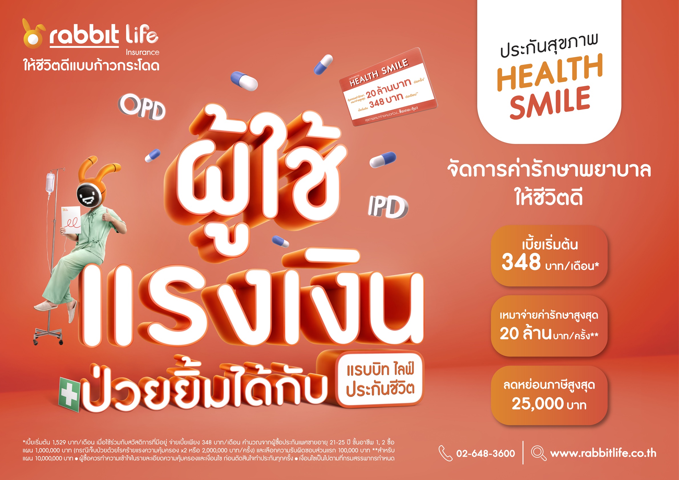 บริษัท แรบบิท ประกันชีวิต จำกัด (มหาชน) หรือ Rabbit Life บริษัทในเครือ บีทีเอส กรุ๊ป โฮลดิ้งส์ จำกัด (มหาชน) เดินหน้าส่งมอบความห่วงใยรุกปิด Pain Point ด้านสุขภาพและภาระค่าใช้จ่ายช่วงฤดูฝนของพนักงานออฟฟิศ ชูแผนประกันสุขภาพเหมาจ่าย “Health Smile” ที่ออกแบบมาเพื่อเสริมช่องว่างของสวัสดิการเดิมที่อาจจะไม่ครอบคลุม และช่วยลดภาระค่ารักษาพยาบาลที่อาจเกินความคุ้มครอง ผ่านแนวคิด “จัดการค่ารักษาพยาบาลให้ชีวิตดี” ด้วยจุดเด่นของความคุ้มครองค่ารักษาพยาบาลแบบเหมาจ่าย แต่จ่ายเบี้ยประกันรายเดือนในราคาเบา ๆ คุ้มครองค่ารักษาสูงสุดด้วยวงเงินสูงถึง 20 ล้านบาท แต่พนักงานออฟฟิศเข้าถึงง่าย สามารถใช้งานร่วมกับสวัสดิการของบริษัทได้ ยิ่งทำให้เบี้ยถูกลง ครอบคลุมด้านค่ารักษาครบ ทั้งค่ารักษาพยาบาล ค่ายา และค่าห้อง รวมถึงโรคร้ายแรง ซึ่งตรงกับความต้องการในยุคที่คนทำงานให้ความสำคัญกับสุขภาพและความมั่นคงทางการเงินมากขึ้น ตอกย้ำบทบาทของ Rabbit Life ในฐานะผู้นำประกันชีวิตสำหรับคนรุ่นใหม่ ภายใต้วิสัยทัศน์ “คิดแตกต่างเพื่อยกระดับชีวิต ด้วยประกันชีวิตที่ตอบโจทย์และเข้าใจง่าย”