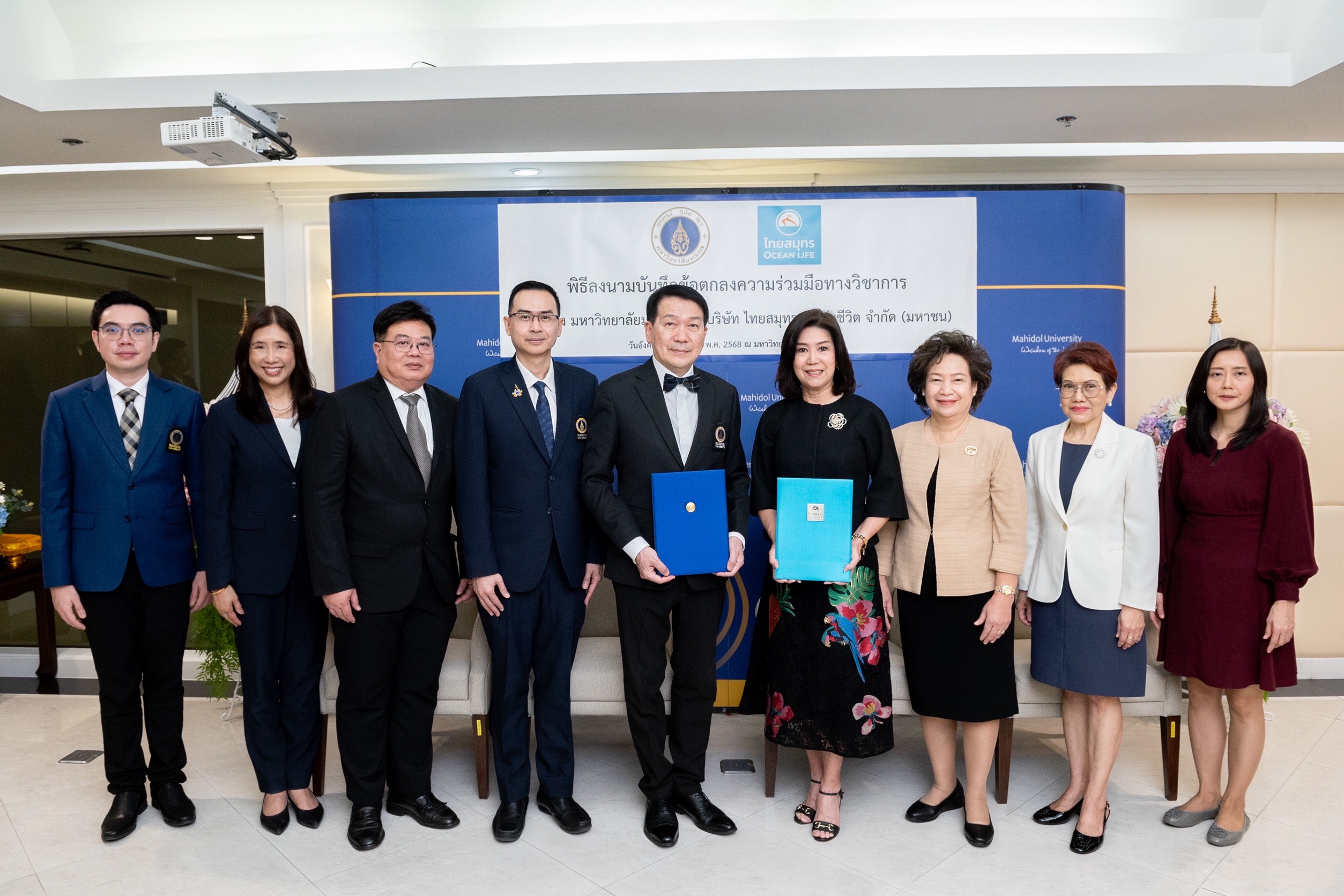 บมจ.ไทยสมุทรประกันชีวิต รักคือพลังของชีวิต โดยคุณนุสรา (อัสสกุล) บัญญัติปิยพจน์ ประธานเจ้าหน้าที่บริหารและกรรมการผู้จัดการ (CEO) พร้อมด้วยคณะผู้บริหาร ร่วมลงนามบันทึกข้อตกลงความร่วมมือทางวิชาการ (MOU) กับ ศาสตราจารย์ นายแพทย์ปิยะมิตร ศรีธรา อธิการบดีมหาวิทยาลัยมหิดล เพื่อสร้างความร่วมมือทางวิชาการ และพัฒนาองค์ความรู้ด้านประกันภัย ด้านเทคโนโลยีสารสนเทศ และนวัตกรรมประกันภัย เพื่อความก้าวหน้าของธุรกิจประภัย พร้อมทั้งเปิดโอกาสให้นิสิตนักศึกษาได้แลกเปลี่ยนเรียนรู้จากประสบการณ์จริง และเข้าร่วมกิจกรรมต่าง ๆ กับบริษัท ตลอดจนเข้ามาเป็นส่วนหนึ่งของการขับเคลื่อน OCEAN LIFE ไทยสมุทร ก้าวสู่การเป็น Digital Insurer อย่างเต็มรูปแบบต่อไปในอนาคต
