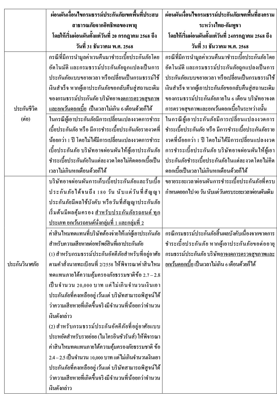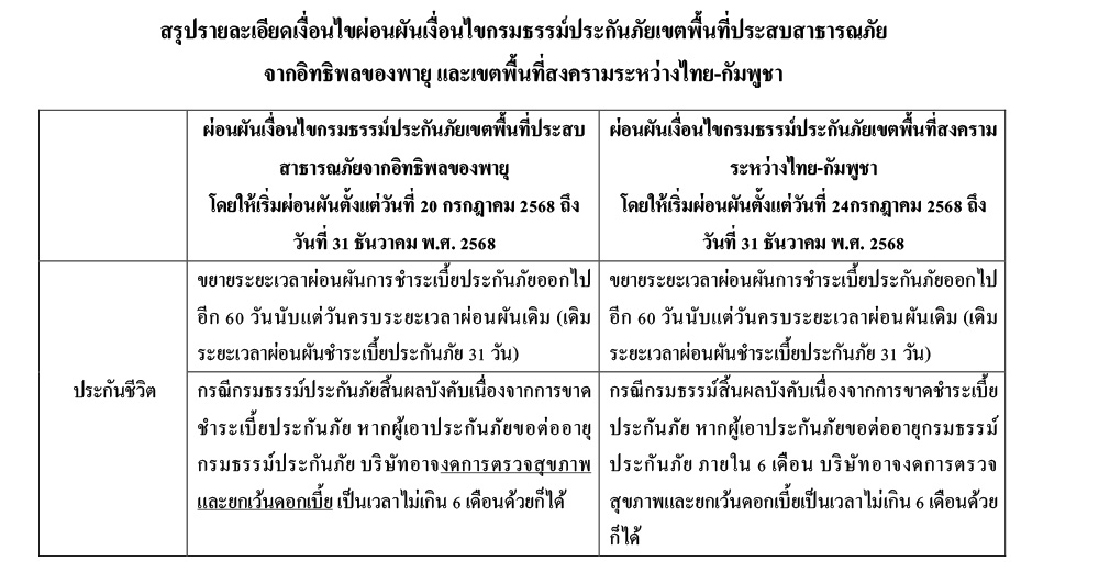 “กระทรวงการคลังได้มีการประชุมติดตามมาตรการช่วยเหลือผู้ได้รับผลกระทบจากสถานการณ์อย่างต่อเนื่อง โดยเฉพาะเรื่องนโยบายต่าง ๆ ของกระทรวง สถาบันการเงินเฉพาะกิจ และการประกันภัย/วินาศภัยของ คปภ. เนื่องจากเป็นเรื่องที่ค่อนข้างยากต่อการทำความเข้าใจ จึงต้องมีการทำความเข้าใจกับทุกฝ่าย เพื่อให้ประชาชนใน 4 จังหวัดที่ได้รับผลกระทบจากเหตุการณ์ความไม่สงบบริเวณชายแดนไทย – กัมพูชา ได้เข้าใจและใช้สิทธิ์ของตนเองอย่างเต็มที่ เพื่อเยียวยาและดูแลให้เกิดประโยชน์สูงสุด”