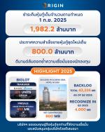 นายพีระพงศ์ จรูญเอก ประธานเจ้าหน้าที่บริหาร บริษัท ออริจิ้น พร็อพเพอร์ตี้ จำกัด (มหาชน) หรือ ORI ผู้พัฒนาธุรกิจอสังหาริมทรัพย์ครบวงจร เปิดเผยว่า บริษัทฯมีสภาพคล่องทางการเงินเพียงพอที่จะรองรับการเติบโตทางธุรกิจในอนาคต รวมถึงมีความสามารถในการชำระคืนหุ้นกู้ที่ครบกำหนดได้มาอย่างต่อเนื่องทุกรุ่น โดยล่าสุดบริษัทฯ ได้ชำระหุ้นกู้ที่ครบกำหนดในรอบ 1 กันยายน 2568 ครบเต็มจำนวน 1,982.20 ล้านบาท ตามกำหนด สะท้อนถึงความพร้อมในการชำระหนี้ และมีสภาพคล่องที่ยังแข็งแกร่ง บริษัทฯ ขอขอบคุณผู้ถือหุ้นกู้ทุกท่านที่ให้ความเชื่อมั่นและสนับสนุนกลุ่มบริษัทด้วยดีเสมอมา