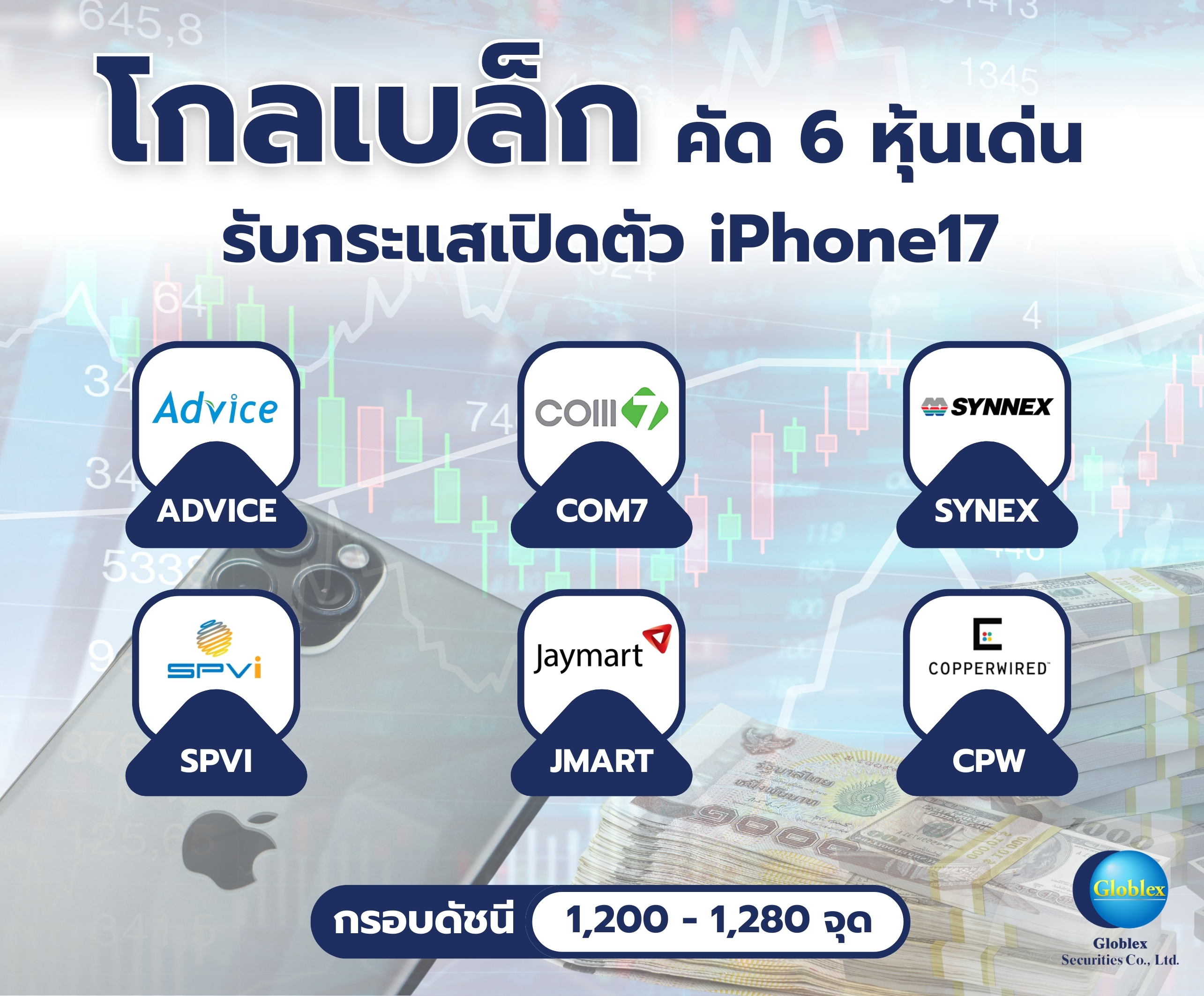นายวัชเรนทร์ จงยรรยง ผู้อำนวยการฝ่ายวิจัย บล.โกลเบล็ก แนะนำกลยุทธ์สำหรับเดือนกันยายนลงทุนในหุ้นที่ได้ประโยชน์จากการเปิดตัว iPhone 17 ที่มีกระแสข่าวว่าจะเปิดตัวในวันที่ 9 ก.ย.นี้ ส่งผลให้หุ้นกลุ่มค้าปลีกและจัดจำหน่ายสินค้าไอทีได้รับอานิสงส์โดยตรง ได้แก่ ADVICE, COM7, SYNEX, SPVI, JMART และ CPW