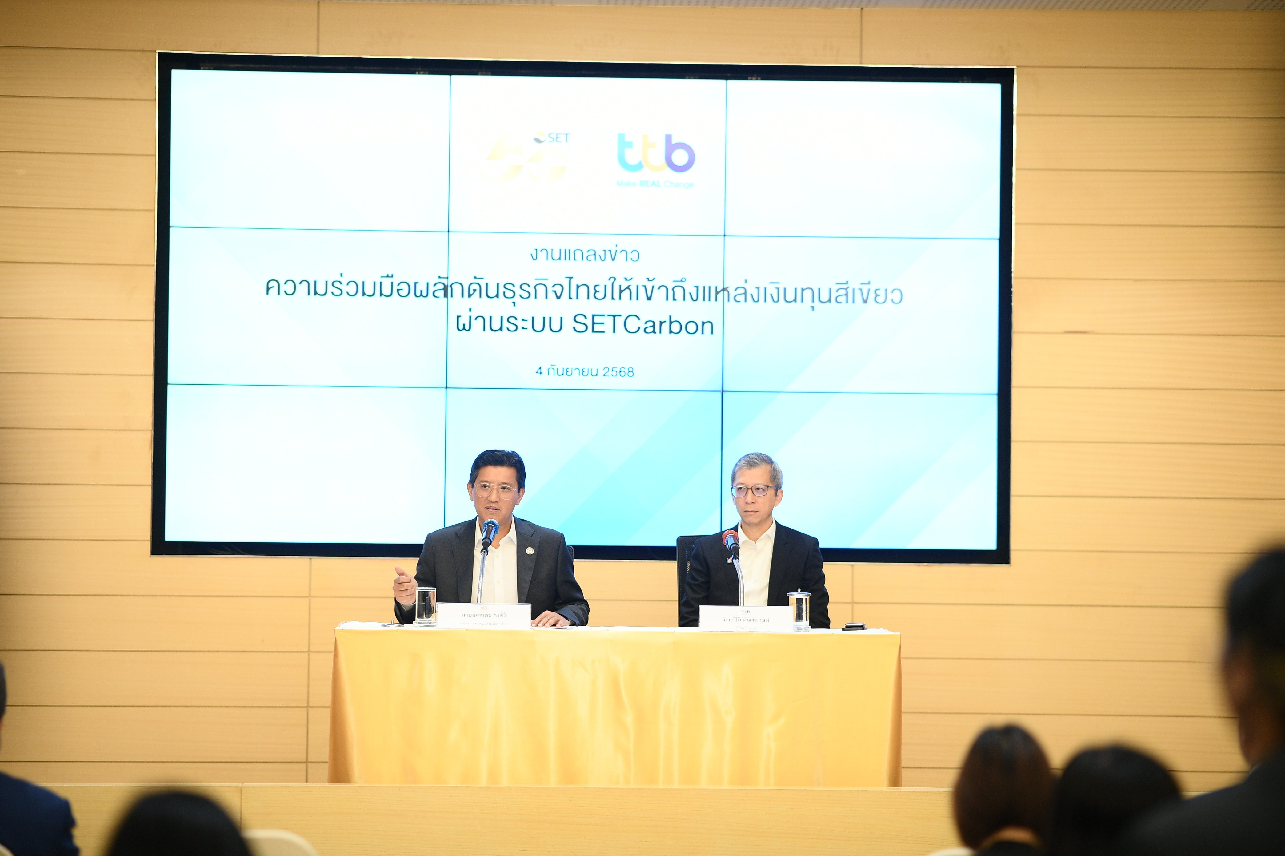 • ภายใต้ความร่วมมือนี้ จะเปิดโอกาสให้ลูกค้าธุรกิจของทีทีบี รวมถึง SME จะสามารถใช้ระบบ SETCarbon ของตลาดหลักทรัพย์ฯ ในการช่วยจัดการ และรายงานข้อมูลก๊าซเรือนกระจก ซึ่งเป็นข้อมูลสำคัญในการพิจารณาสินเชื่อสีเขียว