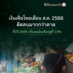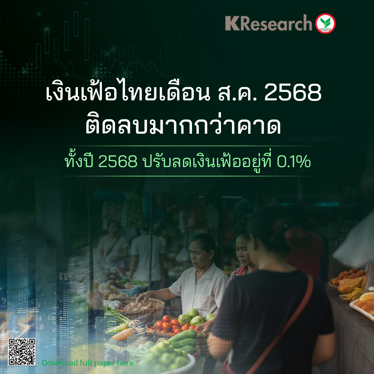 เงินเฟ้อไทยยังมีความเสี่ยงของสภาวะเงินฝืด จากราคาที่ปรับลดลงขยายวงกว้าง (Broad-based) มากขึ้น อย่างไรก็ดี อัตราเงินเฟ้อพื้นฐานยังปรับเพิ่มขึ้นที่ 0.81%YoY ในเดือนส.ค. 2568 และผู้บริโภคยังมีความกังวลต่อค่าครองชีพที่อยู่ในระดับสูง