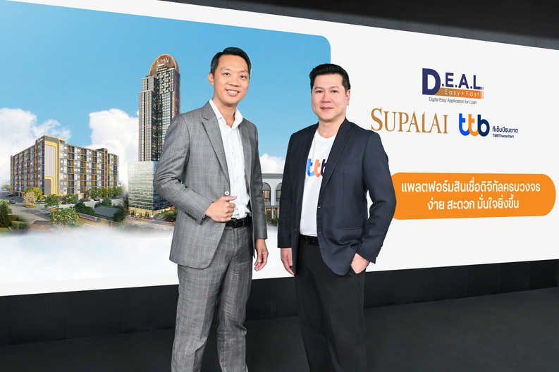 ทีเอ็มบีธนชาต และ นายไตรเตชะ ตั้งมติธรรม (ซ้าย) กรรมการผู้จัดการ บริษัท ศุภาลัย จำกัด (มหาชน) ร่วมเปิดตัว ระบบ D.E.A.L. (Digital Easy Application for Loan) ที่ศุภาลัยพัฒนาขึ้น เพี่อยกระดับกระบวนการขอสินเชื่อเพื่อที่อยู่อาศัยแบบครบวงจร ซึ่งถือว่าเป็นแพลตฟอร์มสินเชื่อดิจิทัลที่ครบ จบในที่เดียว ตั้งแต่การประเมินความพร้อม เปรียบเทียบข้อเสนอ และเงื่อนไขสินเชื่อที่ตอบโจทย์ความสามารถในการผ่อนชำระ พร้อมติดตามผลอนุมัติ ช่วยให้กระบวนการยื่นกู้ขอสินเชื่อบ้านและคอนโดมิเนียมของลูกค้า