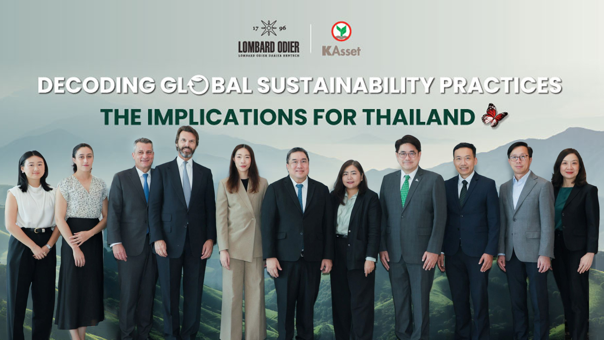 บริษัทหลักทรัพย์จัดการกองทุน กสิกรไทย จำกัด (KAsset) ร่วมกับลอมบาร์ด โอเดียร์ (Lombard Odier) สถาบันการเงินระดับโลกจากสวิตเซอร์แลนด์ ในฐานะพันธมิตรที่ปรึกษาด้านการลงทุนเพื่อความยั่งยืน จัดงานสัมมนา “Decoding Global Sustainability Practices: The Implications for Thailand” โดยได้รับเกียรติจาก ดร.พิพัฒน์พงศ์ โปษยานนท์ (ที่ 4 จากขวา) ประธานกรรมการ บลจ.กสิกรไทย (KAsset) และ ผู้จัดการใหญ่ ธนาคารกสิกรไทย (KBank) เป็นประธานในงาน และมร.อูแบร์ เคลเลอร์ (ที่ 4 จากซ้าย) Senior Managing Partner, Lombard Odier แสดงวิสัยทัศน์ภายใต้หัวข้อ “Sustainability in the World of Asset Owners and Asset Managers” และดร.ศรพล ตุลยเสถียร (กลาง) รองผู้จัดการ ตลาดหลักทรัพย์แห่งประเทศไทย แสดงวิสัยทัศน์ในระดับนโยบายของตลาดทุนไทยต่อการเปลี่ยนผ่านอย่างยั่งยืน รวมถึงการเสวนาจากผู้ทรงคุณวุฒิทั้งในประเทศและต่างประเทศ ทั้งจาก Lombard Odier Investment Managers สำนักงานคณะกรรมการกำกับหลักทรัพย์และตลาดหลักทรัพย์ (ก.ล.ต.) สถาบันวิจัยเพื่อการพัฒนาประเทศไทย (TDRI) บริษัท ไมเนอร์ อินเตอร์เนชั่นแนล จำกัด (มหาชน) และ KAsset ณ โรงแรมเดอะ ริทซ์-คาร์ลตัน กรุงเทพฯ เมื่อเร็วๆ นี้