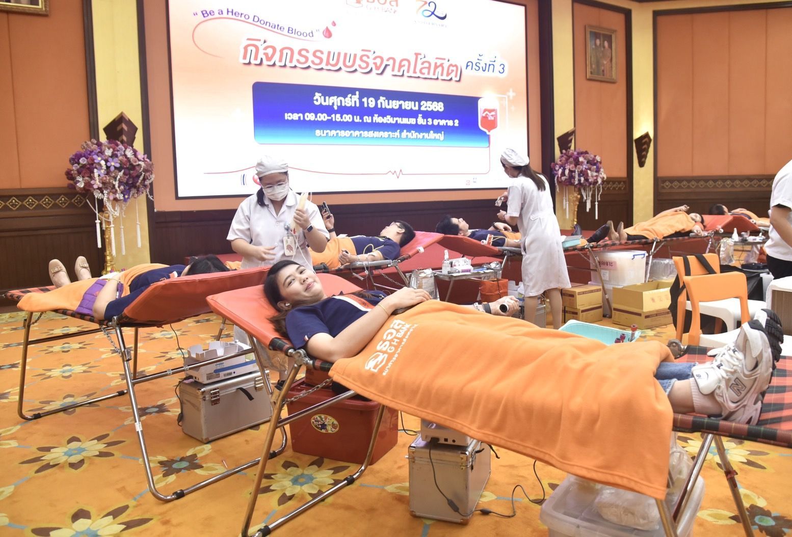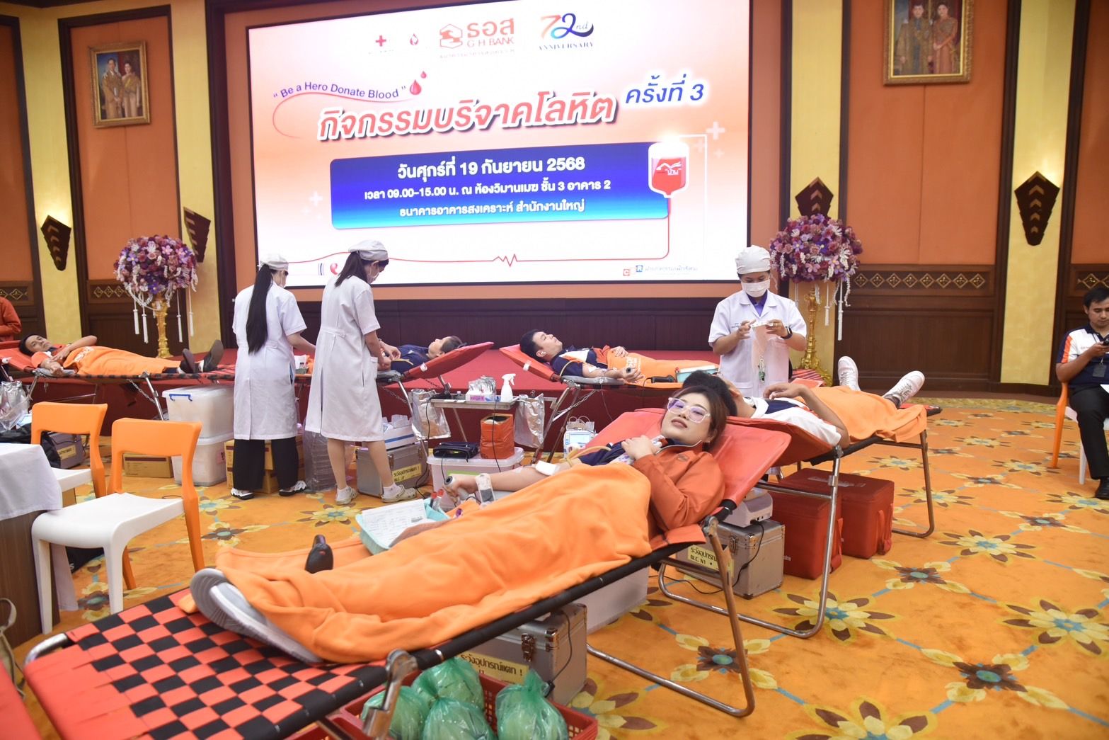ธนาคารอาคารสงเคราะห์ (ธอส.) ร่วมกับ ศูนย์บริการโลหิตแห่งชาติ สภากาชาดไทย จัดกิจกรรมรับบริจาคโลหิต ครั้งที่ 3 ประจำปี 2568 เพื่อช่วยเหลือผู้ป่วยที่ขาดแคลนโลหิตในโรงพยาบาลทั่วประเทศอันเป็นประโยชน์ต่อสังคมโดยส่วนรวม อีกทั้งยังสอดคล้องกับนโยบายด้านการแสดงความรับผิดชอบต่อสังคมและสิ่งแวดล้อม หรือ CSR ของธนาคาร โดยมีคณะผู้บริหาร พนักงานธนาคาร ลูกค้าและประชาชนจำนวนมากร่วมบริจาคโลหิต ในครั้งนี้ จำนวน 221 ราย ได้รับโลหิต จำนวน 98,150 ซีซี ซึ่งการรับบริจาคโลหิตเป็นการส่งเสริมพนักงานธนาคารมีส่วนร่วมเสียสละเพื่อทำประโยชน์ในการช่วยเหลือผู้อื่นซึ่งโลหิตที่ได้รับจะถูกนำไปสำรองสำหรับผู้ป่วยในโรงพยาบาลทั่วประเทศซึ่งสอดคล้องกับนโยบายด้านการแสดงความรับผิดชอบต่อสังคมและสิ่งแวดล้อมหรือ CSR ของธนาคาร โดยธนาคารให้ความสำคัญและดำเนินการมาอย่างต่อเนื่อง ควบคู่กับการดำเนินงานตามภารกิจหลักในการสนับสนุนสินเชื่อเพื่อที่อยู่อาศัยแก่ประชาชนโดยเฉพาะกลุ่มผู้มีรายได้น้อยและปานกลางให้สามารถมีที่อยู่อาศัยเป็นของตนเอง โดยกิจกรรมรับบริจาคโลหิต ครั้งที่ 3 ประจำปี 2568 จัดขึ้น ณ ห้องวิมานเมฆ ธนาคารอาคารสงเคราะห์ สำนักงานใหญ่ เมื่อวันที่ 19 กันยายน 2568