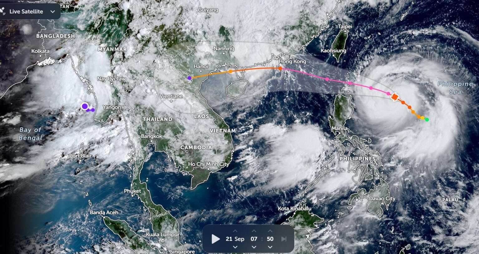เมื่อเวลา 16.00 น. ของวันนี้ (22 ก.ย. 68) พายุไต้ฝุ่น “รากาซา” ทางตอนบนของเกาะลูซอน ประเทศฟิลิปปินส์มีศูนย์กลางอยู่ที่ละติจูด 19.5 องศาเหนือ ลองจิจูด 121.1 องศาตะวันออก ความเร็วลมสูงสุดใกล้ศูนย์กลางประมาณ 205 กิโลเมตรต่อชั่วโมง พายุนี้กำลังเคลื่อนตัวทางทิศตะวันตก ด้วยความเร็วประมาณ 20 กิโลเมตรต่อชั่วโมง คาดว่าจะเคลื่อนลงสู่ทะเลจีนใต้ในค่ำวันนี้ ต่อจากนั้นจะเคลื่อนเข้าใกล้เกาะฮ่องกง และเคลื่อนผ่านแนวชายฝั่งทางตอนใต้ของประเทศจีน ผ่านเกาะไหหลำเข้าสู่อ่าวตังเกี๋ยในวันที่ 25 ก.ย. 68 และจะอ่อนกำลังลงเป็นพายุโซนร้อนก่อนเคลื่อนขึ้นฝั่งประเทศเวียดนามตอนบน จากนั้นคาดว่าจะอ่อนกำลังลงอย่างรวดเร็ว เนื่องจากมีมวลอากาศเย็นจากประเทศจีนแผ่เสริมลงมาปกคลุม ในช่วงวันที่ 25–26 ก.ย. 68