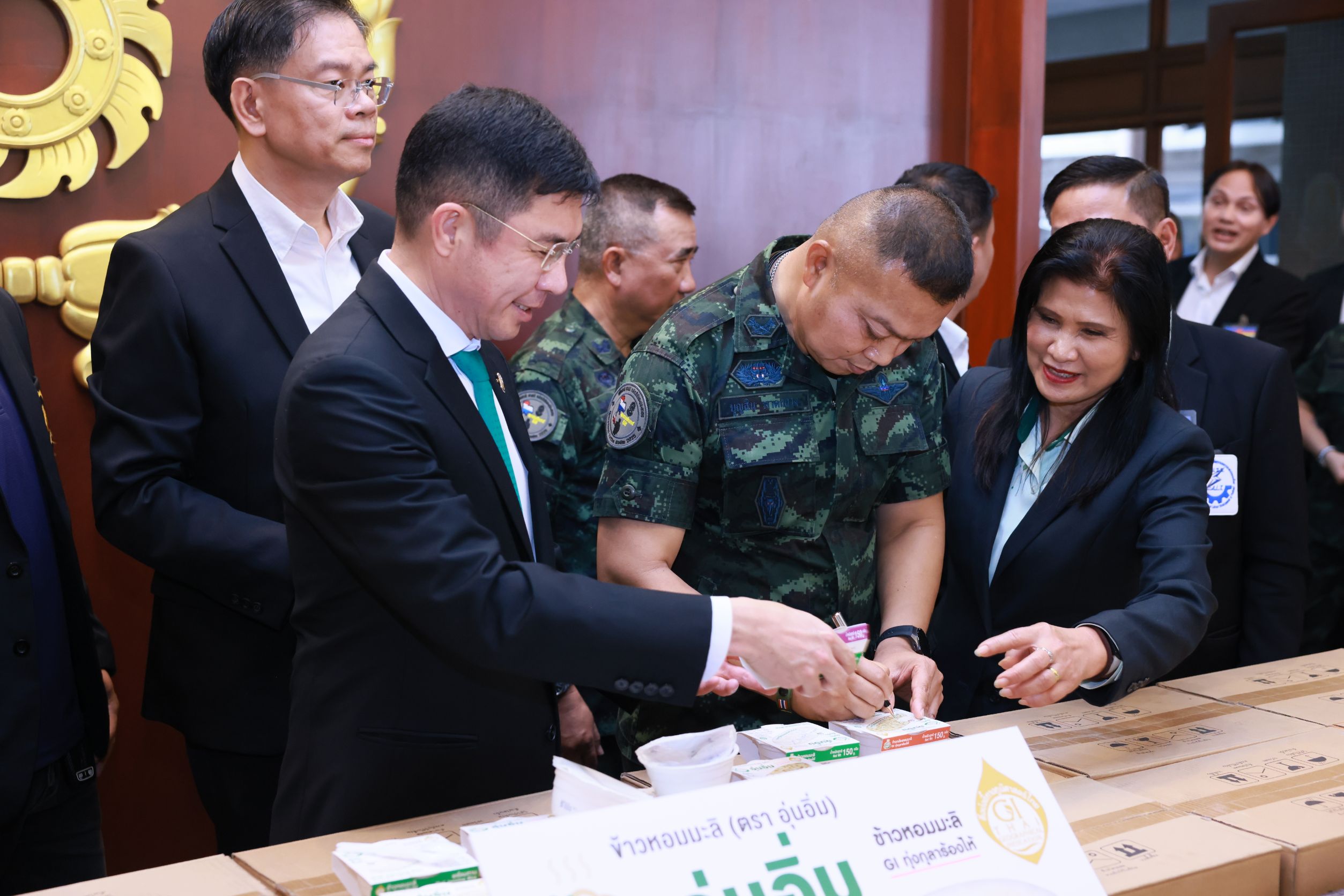 นายฉัตรชัย ศิริไล ผู้จัดการ ธนาคารเพื่อการเกษตรและสหกรณ์การเกษตร (ธ.ก.ส.) มอบข้าวพร้อมทานตรา “อุ่นอิ่ม” ทั้งข้าวหอมมะลิ ข้าวกล้องหอมมะลิ และข้าวไรซ์เบอร์รี่ จำนวนทั้งสิ้น 12,000 ถ้วย ให้แก่กองทัพบก โดยมี พลเอก เอกรัตน์ ช้างแก้ว ประธานคณะที่ปรึกษากองทัพบก เป็นสักขีพยาน และมีพลโท บุญสิน พาดกลาง แม่ทัพภาคที่ 2 เป็นผู้รับมอบ สำหรับนำไปให้กับกำลังพลในพื้นที่ใช้ในการบริโภคเพื่อสนับสนุนการดำเนินงานของหน่วยทหารและเจ้าหน้าที่ในการปฏิบัติภารกิจในพื้นที่ชายแดนเพื่อรักษาอธิปไตยและความสงบให้กับประชาชนและประเทศชาติหรือในการปฏิบัติภารกิจบรรเทาทุกข์เร่งด่วนเพื่อช่วยเหลือประชาชน หลังจากก่อนหน้านี้ข้าวพร้อมทานตรา “อุ่นอิ่ม” ได้ถูกส่งมอบไปยังเจ้าหน้าที่ทหารเพื่อภารกิจในพื้นที่ชายแดนผ่านหน่วยงานต่าง ๆ ไปแล้วกว่า 24,000 ถ้วย โดยข้าวพร้อมทานตรา “อุ่นอิ่ม” ถือเป็นผลิตภัณฑ์ของเกษตรกรที่จัดทำโดยสหกรณ์การเกษตรเพื่อการตลาดลูกค้า ธ.ก.ส. ร้อยเอ็ด (สกต.ร้อยเอ็ด) ที่ ธ.ก.ส. ได้เข้าไปยกระดับสินค้า เพื่อเพิ่มมูลค่าให้กับผลิตภัณฑ์ ตั้งแต่ขั้นตอนการพัฒนาโดยใช้นวัตกรรมและเทคโนโลยีเข้ามาแปรรูปข้าวให้มีคุณภาพ อร่อยได้มาตรฐาน สามารถทานได้ทันที หรืออุ่นในไมโครเวฟเพียง 60 วินาที เพื่อเพิ่มความอร่อย และยังสามารถเก็บในอุณหภูมิปกติได้นานถึง 18 เดือน โดยไม่จำเป็นต้องแช่เย็น ผู้ที่สนใจสามารถสั่งซื้อได้ที่ สกต.ร้อยเอ็ด จำกัด โทร.088-338-2572 โดยมีนายชาคริต ดิเรกวัฒนชัย รองกรรมการผู้อำนวยการสำนักกิจการและสื่อสารองค์กร บริษัท บีอีซี เวิลด์ จำกัด (มหาชน) พร้อมด้วย พลเอก เดชนิธิศ เหลืองงามขำ ผู้อำนวยการองค์การสงเคราะห์ทหารผ่านศึก (ผอ.อผศ.) และหน่วยงานพันธมิตรร่วมในพิธีส่งมอบ ณ อาคาร 2 กองบัญชาการกองทัพบก ถนนราชดำเนินนอก กรุงเทพมหานคร