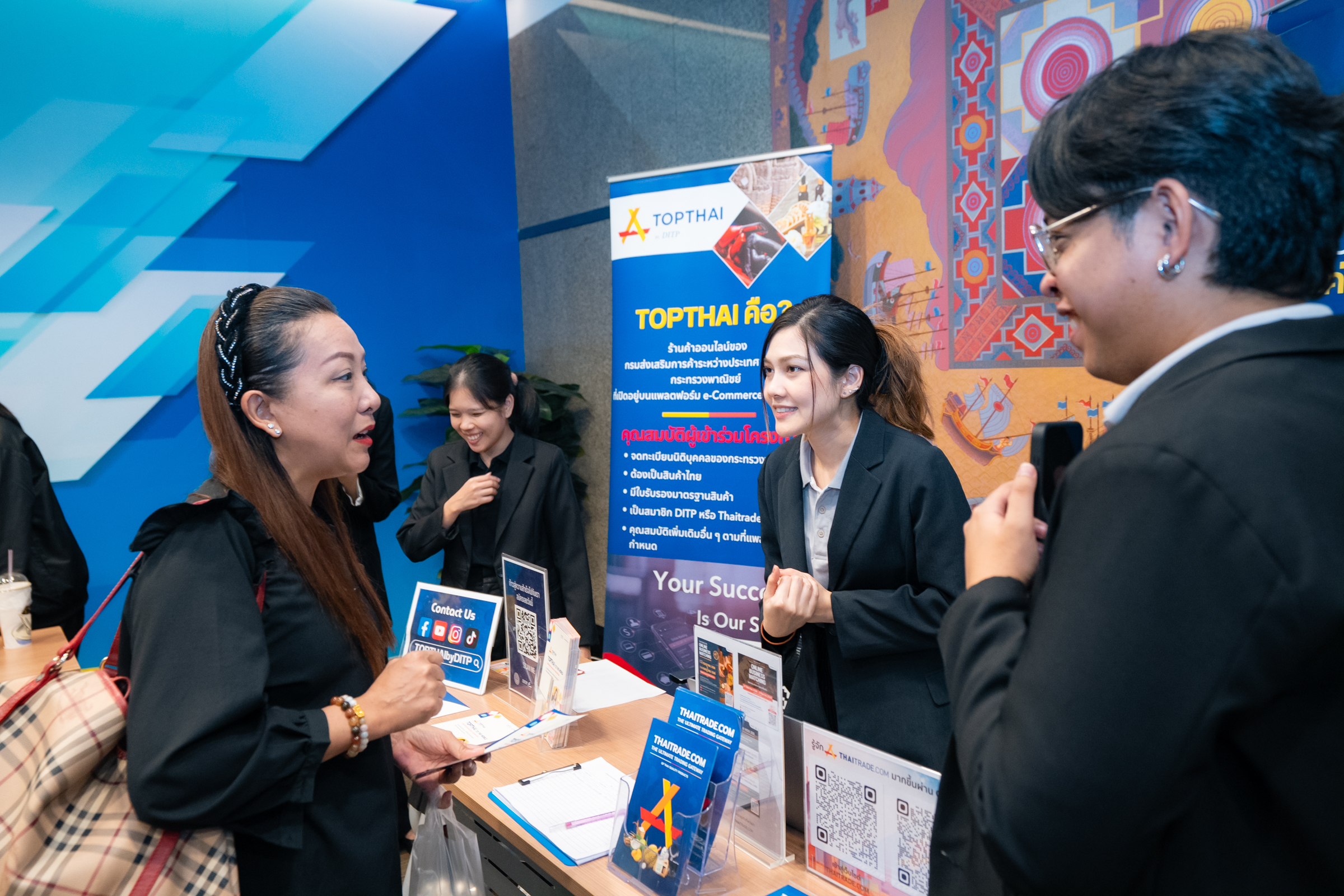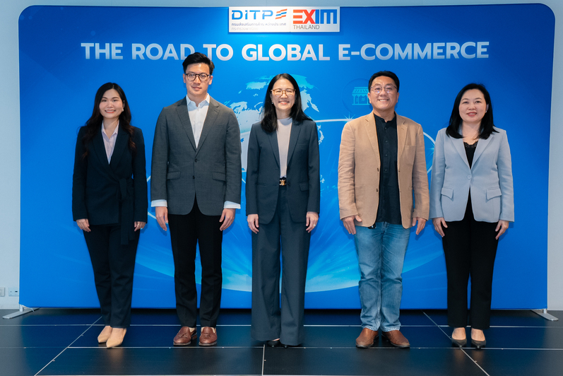 นางสาวศนิสา พลังตระกูล ผู้ช่วยกรรมการผู้จัดการ ธนาคารเพื่อการส่งออกและนำเข้าแห่งประเทศไทย (EXIM BANK) นายกฤษดา สิงหา นักวิชาการพาณิชย์ชำนาญการ สำนักตลาดพาณิชย์ดิจิทัล ดร.เจษฎาพัญ ทองศรีนุช นักวิชาการพาณิชย์ชำนาญการ สำนักยุทธศาสตร์การค้าระหว่างประเทศ กรมส่งเสริมการค้าระหว่างประเทศ กระทรวงพาณิชย์ นายกันตภณ พร้อมมูล ผู้จัดการฝ่ายพันธมิตรภาครัฐและปฏิบัติการ บริษัท ช้อปปี้ (ประเทศไทย) จำกัด และนายสิริเชษฐ์ จิรพงษ์วัฒนะ กรรมการผู้จัดการ บริษัท สยาม คอนซูมเมอร์ โปรดักส์ จำกัด ร่วมเปิดโครงการ “The Road to Global E-Commerce 2025” เพื่อส่งเสริมศักยภาพผู้ประกอบการ SMEs ไทยให้ก้าวสู่โอกาสทางการค้าระหว่างประเทศผ่านช่องทาง E-Commerce ในภูมิภาคอาเซียนบนแพลตฟอร์ม TOPTHAI และ Shopee International รวมถึงการสนับสนุนสิทธิประโยชน์โครงการ SMEs Pro-Active และถ่ายทอดประสบการณ์จริงและกลยุทธ์การทำธุรกิจจากผู้ประกอบการที่ประสบความสำเร็จเพื่อให้ผู้ประกอบการ SMEs ไทยสามารถเข้าถึงตลาดการค้าออนไลน์ได้อย่างมั่นใจ ผ่านองค์ความรู้ที่จำเป็นต่อความสำเร็จทางธุรกิจ พร้อมเปิด EXIM Export Clinic ให้คำปรึกษาด้านการเงิน และการป้องกันความเสี่ยงทางการค้าระหว่างประเทศ ณ EXIM BANK สำนักงานใหญ่ เมื่อวันที่ 23 กันยายน 2568