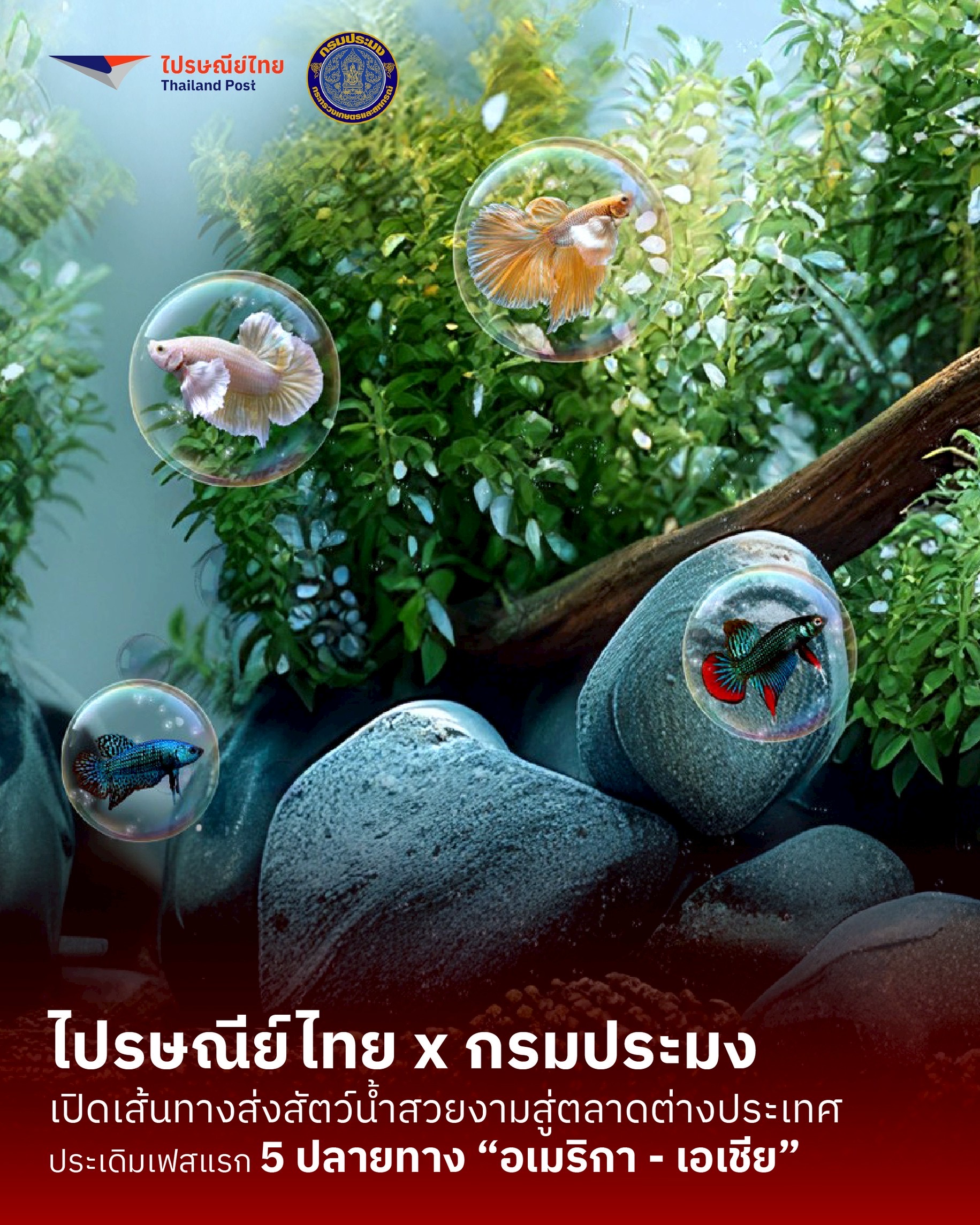 บริษัท ไปรษณีย์ไทย จำกัด จับมือกรมประมงเปิดบริการส่งด่วนสัตว์น้ำสวยงามไปยังต่างประเทศผ่านเครือข่ายไปรษณีย์เป็นครั้งแรก โดยเฟสแรกจะเริ่มให้บริการในเดือนตุลาคม 2568 ส่งออกปลากัด ใน 5 ตลาดหลัก ได้แก่ สหรัฐอเมริกา จีน ญี่ปุ่น ไต้หวัน และอินโดนีเซีย ก่อนขยายไปตลาดอื่น ๆ ที่มีศักยภาพในอนาคต ทั้งนี้ บริการดังกล่าวจะรองรับเกษตรกรผู้เพาะเลี้ยงที่ขึ้นทะเบียนกับกรมประมงกว่า 10,000 ราย ภายใต้บริการส่งด่วนสัตว์น้ำสวยงามไปต่างประเทศ โดยปัจจุบันตลาดสัตว์น้ำสวยงามโลกมีมูลค่ากว่า 10,000 ล้านบาทต่อปี ไทยมีศักยภาพครองสัดส่วนการส่งออกปลากัดและสัตว์น้ำสวยงามเพิ่มขึ้นจากปัจจุบันที่ราว 11% และมีมูลค่ากว่า 1,000 ล้านบาท โดยเฉพาะปลากัดที่มีสัดส่วนถึง 40%