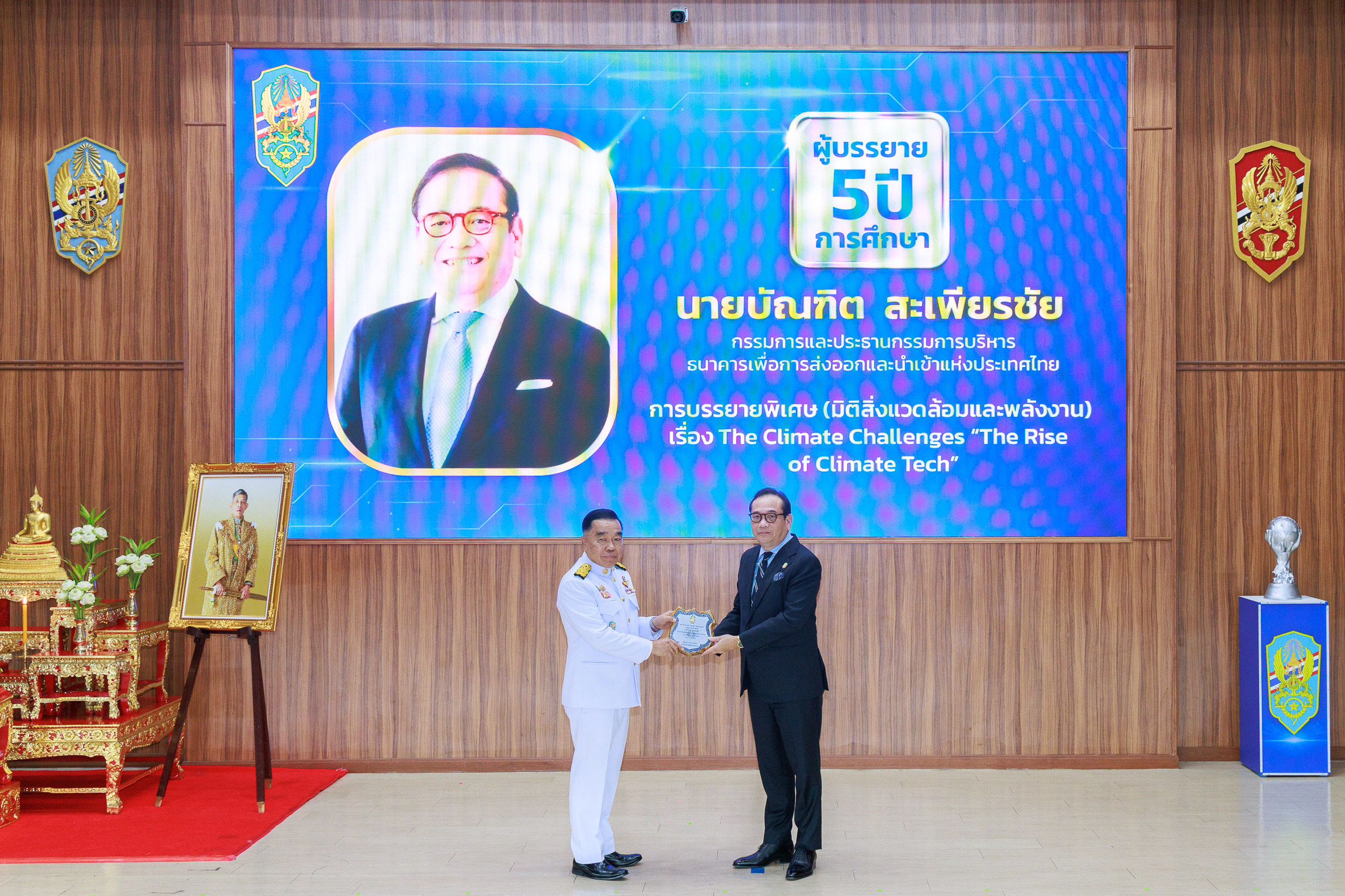 นายบัณฑิต สะเพียรชัย กรรมการ และรักษาการกรรมการผู้จัดการธนาคารเพื่อการส่งออกและนำเข้าแห่งประเทศไทย (EXIM BANK) เข้ารับโล่เชิดชูเกียรติในฐานะผู้บรรยายในหลักสูตร ครบ 5 ปีการศึกษา ในพิธีปิดการศึกษาหลักสูตรการป้องกันราชอาณาจักร รุ่นที่ 67 โดยมี พล.อ.ณัฐพล นาคพาณิชย์ รัฐมนตรีว่าการกระทรวงกลาโหม เป็นประธานในพิธีฯ ณ หอประชุมวิทยาลัยป้องกันราชอาณาจักร เมื่อวันที่ 23 กันยายน 2568