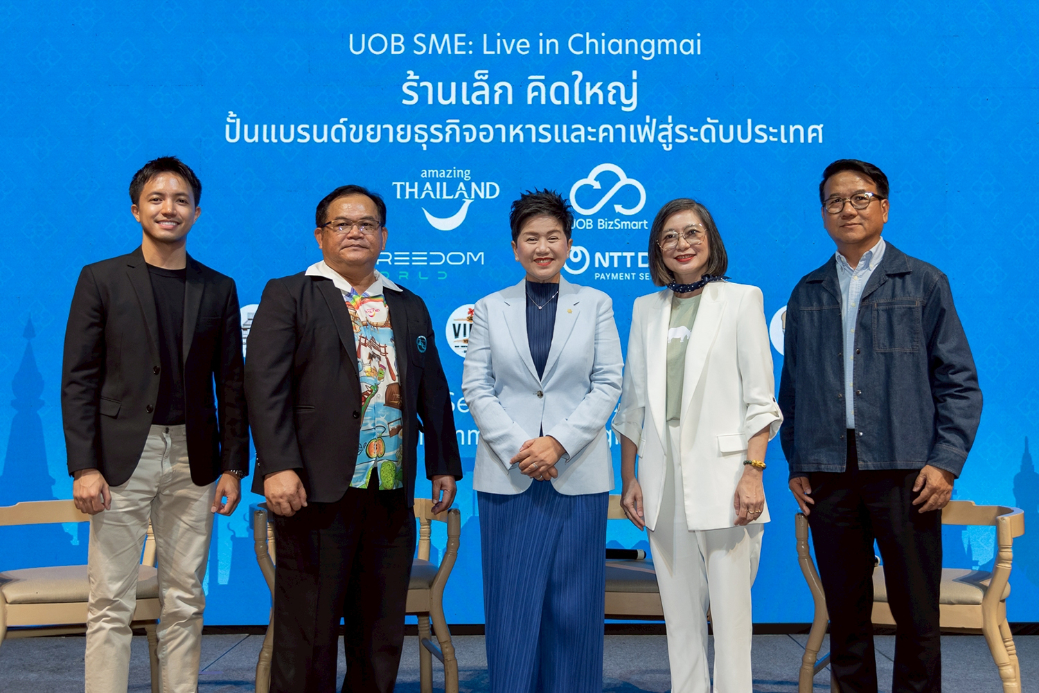 (ในภาพ จากซ้ายไปขวา) ภัทร เสี้ยนสลาย ผู้บริหารรุ่นที่ 3 ของร้านข้าวซอยลําดวนฟ้าฮ่าม, สมชาย ชมพูน้อย ผู้อำนวยการภูมิภาค ภาคเหนือ การท่องเที่ยวแห่งประเทศไทย, สยุมรัตน์ มาระเนตร ผู้ช่วยกรรมการผู้จัดการใหญ่ Business Banking ธนาคารยูโอบี ประเทศไทย, ศรันยภัสสรณ์ ปริเตนัง CEO Ginger Farm Kitchen และคุณธนิต ชุมแสง นายกสมาคมร้านอาหารและสถานบันเทิง จ.เชียงใหม่ และเจ้าของร้าน The View Bar & Restaurant