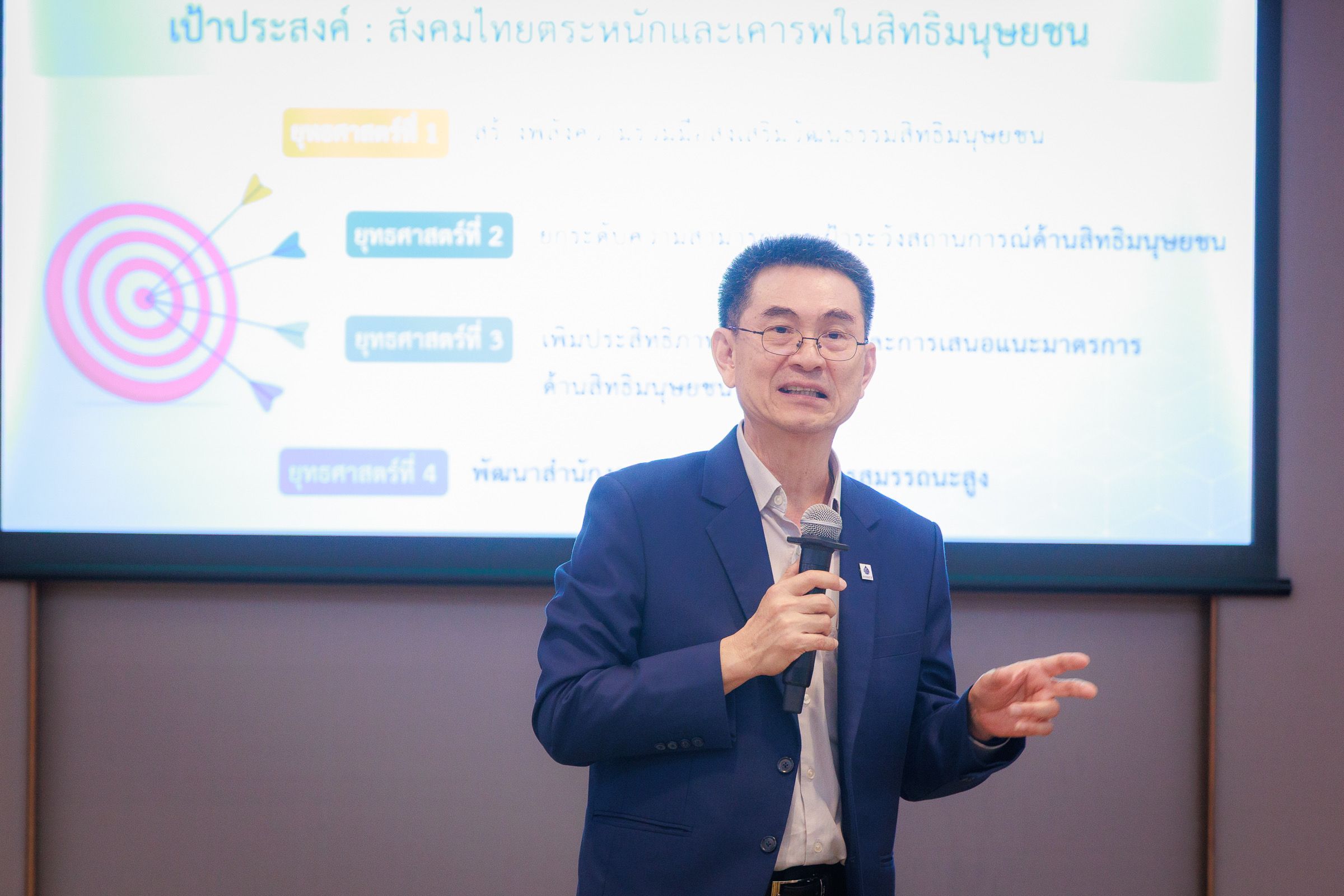 นางสาวศนิสา พลังตระกูล ผู้ช่วยกรรมการผู้จัดการ ธนาคารเพื่อการส่งออกและนำเข้าแห่งประเทศไทย (EXIM BANK) ให้การต้อนรับนายวสันต์ ภัยหลีกลี้ กรรมการสิทธิมนุษยชนแห่งชาติ สำนักงานคณะกรรมการสิทธิมนุษยชนแห่งชาติ ในโอกาสเป็นวิทยากรผู้ทรงคุณวุฒิบรรยายพิเศษด้านการต่อต้านทุจริตคอร์รัปชัน หัวข้อ “โกง = ละเมิดสิทธิ: ผลกระทบที่คุณอาจไม่รู้” ให้แก่ผู้บริหารและพนักงาน EXIM BANK เพื่อเสริมสร้างความตระหนักรู้ถึงผลกระทบและความเกี่ยวโยงของการทุจริตคอร์รัปชันกับสิทธิมนุษยชน รวมถึงการส่งเสริมวัฒนธรรมองค์กรการปฏิบัติงานและพฤติกรรมการปฏิบัติงานที่โปร่งใส มีความรับผิดชอบ บนหลักพื้นฐานของการเคารพสิทธิมนุษยชน ณ EXIM BANK สำนักงานใหญ่ เมื่อวันที่ 25 กันยายน 2568