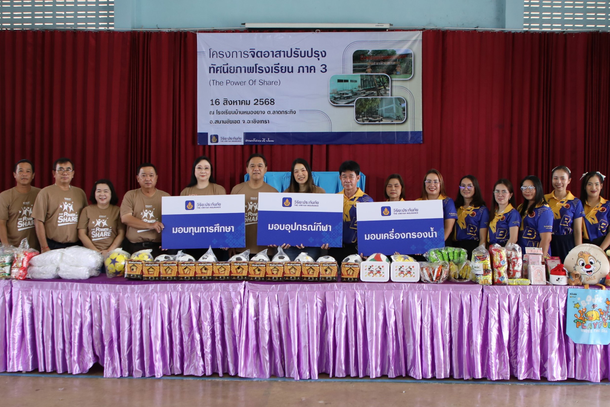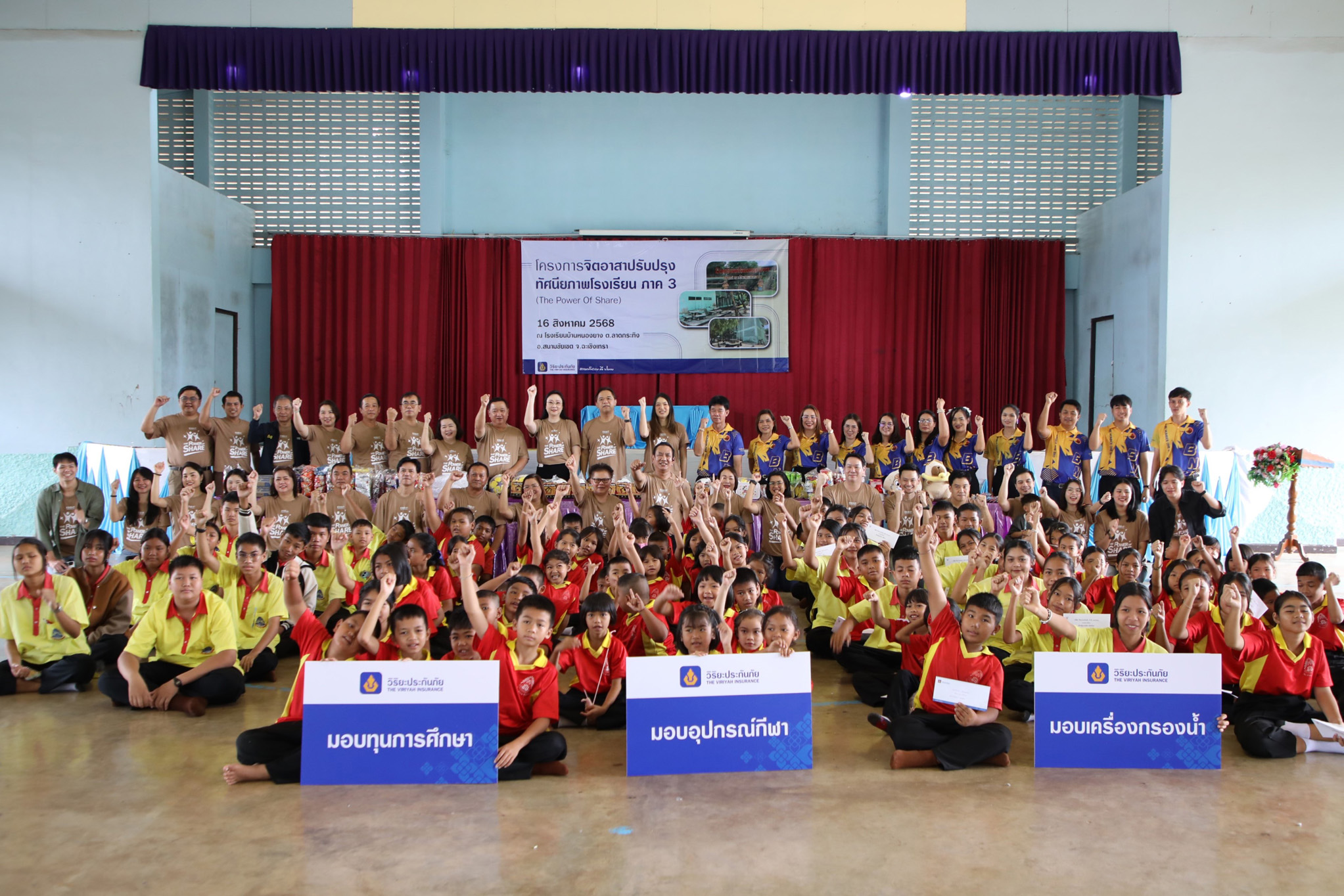 สำหรับ โครงการ “The Power of Share” เป็นอีกหนึ่งโครงการที่ได้รับแรงสนับสนุนจากบุคลากรวิริยะประกันภัยทั่วประเทศ ผ่านการร่วมสมทบทุนซื้อเสื้อยืดลายพิเศษ พร้อมทั้งร่วมแรงร่วมใจลงพื้นที่ทำกิจกรรมในฐานะ “วิริยะจิตอาสา” ด้วยความตระหนักถึงความสำคัญของการพัฒนาการศึกษาอย่างรอบด้าน โดยเชื่อว่า การสร้างสภาพแวดล้อมที่ปลอดภัยและเป็นมิตรต่อผู้เรียน จะเป็นสิ่งที่ช่วยส่งเสริมให้เด็กและเยาวชนเกิดแรงบันดาลใจทางการเรียนรู้มากยิ่งขึ้น และสามารถเติบโตไปเป็นพลเมืองที่สร้างคุณประโยชน์ให้กับชุมชนและประเทศชาติได้ในอนาคต