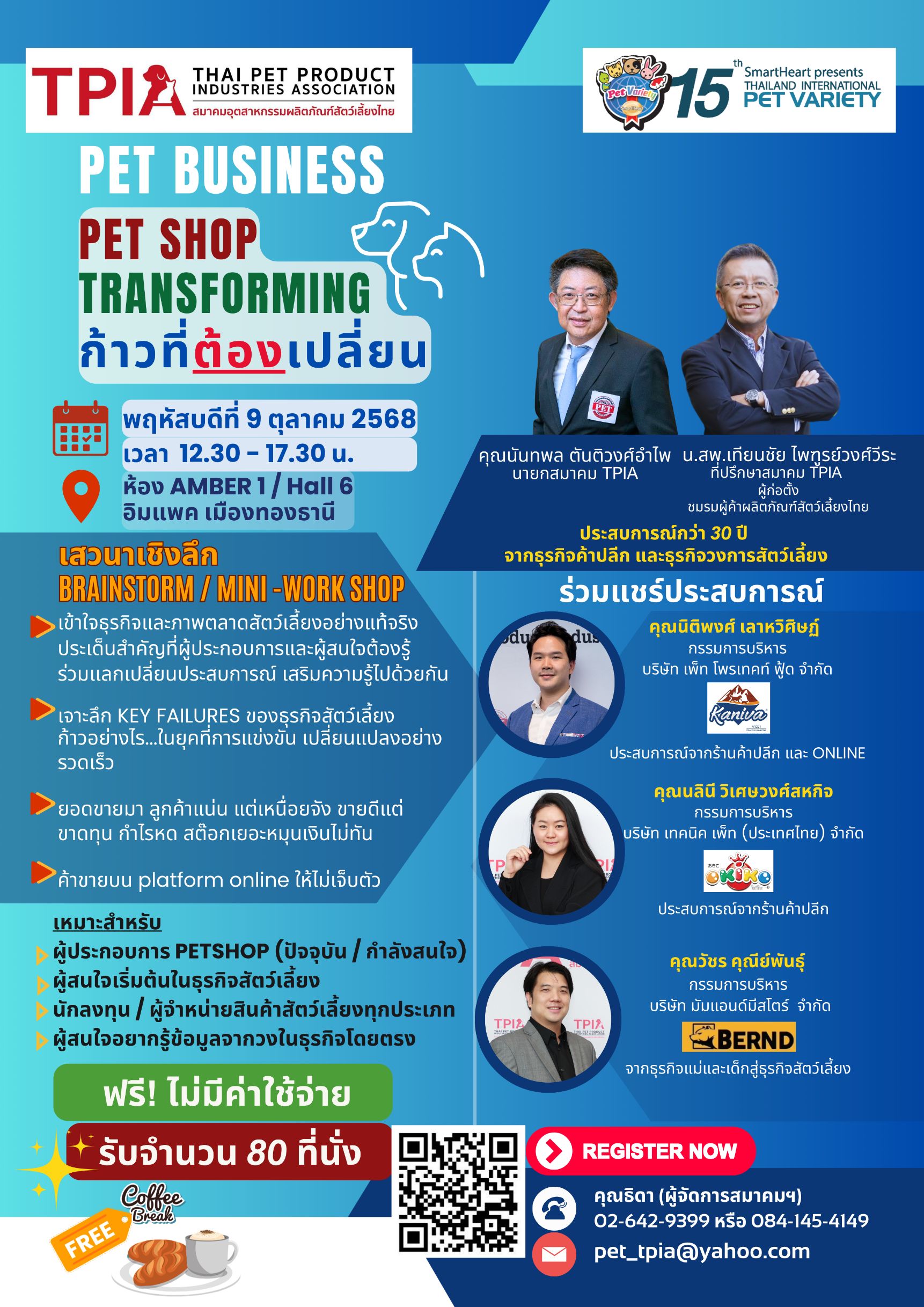นอกจากความบันเทิงและการช้อปปิ้งกว่า 250 บูธ งานปีนี้ยังเป็นเวทีต่อยอดธุรกิจและองค์ความรู้ ผ่านสัมมนาเชิงลึกจากสมาคมอุตสาหกรรมสัตว์เลี้ยงไทย (TPIA) สำหรับผู้ประกอบการร้านเพ็ทช็อป เจ้าของธุรกิจสัตว์เลี้ยง ผู้ผลิต ผู้นำเข้า ผู้จัดจำหน่าย ตลอดจนผู้สนใจลงทุนในอุตสาหกรรมสัตว์เลี้ยง ในหัวข้อ “PET BUSINESS: PET SHOP TRANSFORMING – ก้าวที่ต้องเปลี่ยน” ที่จะล้วงลึกประเด็นสำคัญ อาทิ การเข้าใจธุรกิจและภาพรวมตลาดสัตว์เลี้ยงอย่างแท้จริง พร้อมประเด็นที่ผู้ประกอบการและผู้สนใจต้องรู้ เจาะลึก Key Failures ของธุรกิจสัตว์เลี้ยงและแนวทางก้าวต่อไปในยุคที่การแข่งขันและการเปลี่ยนแปลงเกิดขึ้นอย่างรวดเร็ว การแก้โจทย์ “ขายดีแต่ไม่มีกำไร” ไปจนถึงกลยุทธ์ค้าขายบนแพลตฟอร์มออนไลน์ให้เติบโตได้จริง พร้อมแลกเปลี่ยนมุมมองธุรกิจกับผู้เชี่ยวชาญตัวจริงของวงการสัตว์เลี้ยงไทย อาทิ นายนันทพล ตันติวงศ์อำไพ นายกสมาคม TPIA, น.สพ.เทียนชัย ไพฑูรย์วงศ์วีระ ที่ปรึกษาสมาคม TPIA และผู้ก่อตั้งชมรมผู้ค้าผลิตภัณฑ์สัตว์เลี้ยงไทย และ นายนิติพงศ์ เลาหวิศิษฏ์ กรรมการ สมาคมอุตสาหกรรมผลิตภัณฑ์สัตว์เลี้ยงไทย (TPIA) รวมถึงอีกหลายท่านจากทั้งธุรกิจออฟไลน์และออนไลน์