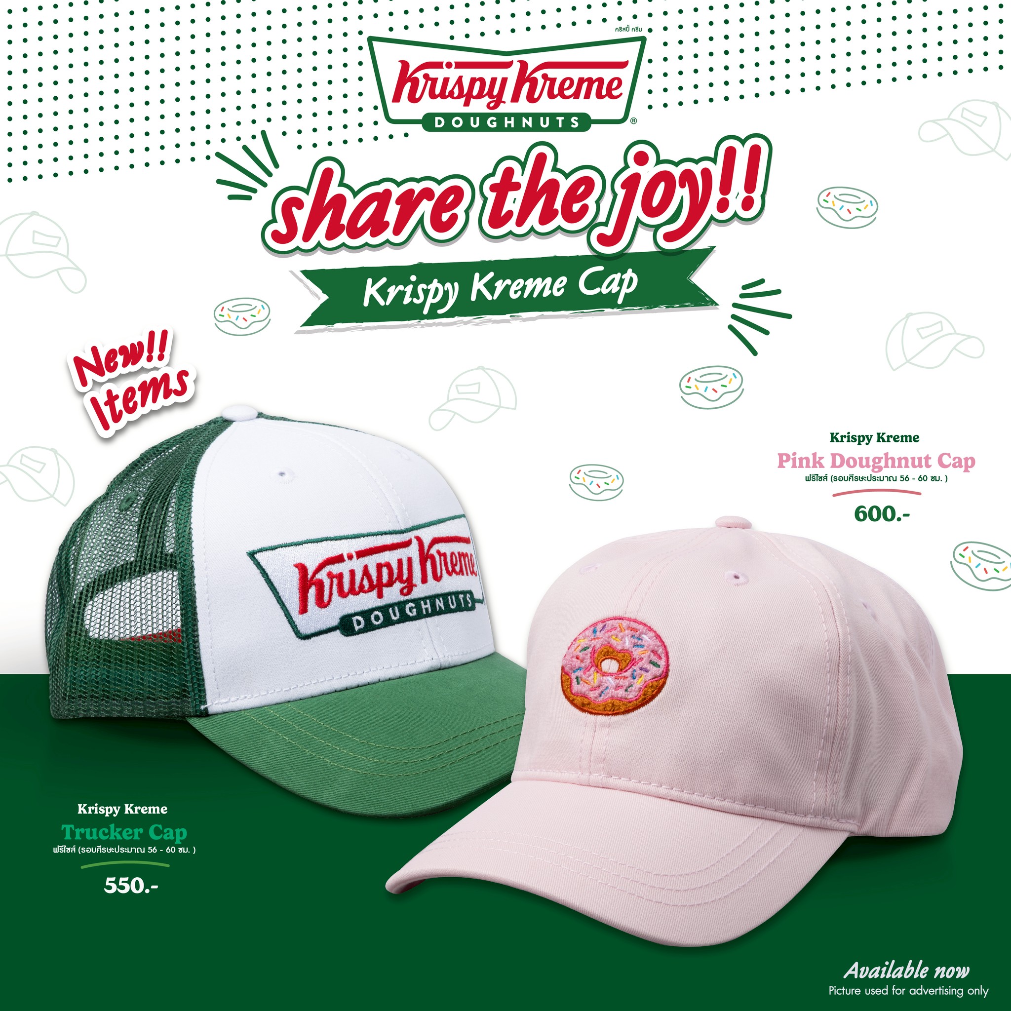มามิกซ์แอนด์แมทช์ลุคให้โดดเด่นไม่ซ้ำใครด้วย “Share The Joy Krispy Kreme Cap” ได้ตั้งแต่วันนี้เป็นต้นไป ณ ร้านคริสปี้ ครีม กว่า 50 สาขา ทั้งกรุงเทพฯ และต่างจังหวัด หรือสั่งผ่านแอปพลิเคชันฟู้ดดิลิเวอรี