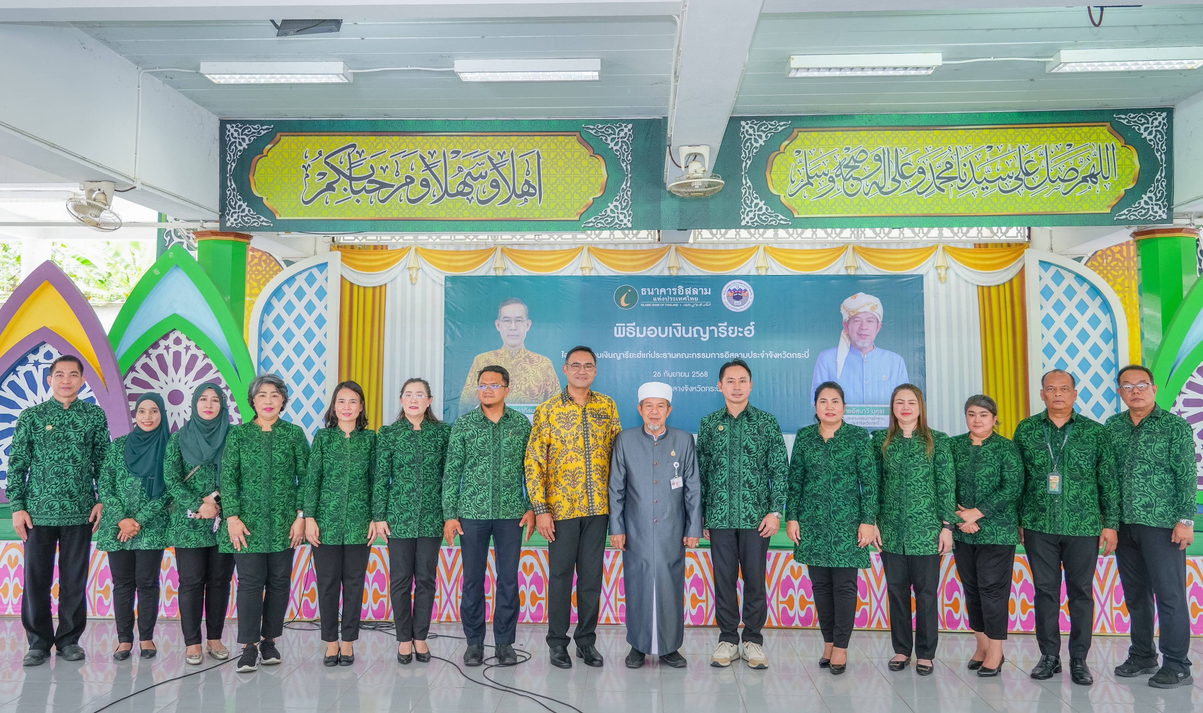 ธนาคารอิสลามแห่งประเทศไทย (ไอแบงก์) โดย นายธีระ ยีโกบ ผู้ช่วยกรรมการผู้จัดการธนาคาร จัด “พิธีส่งมอบเงินญารียะฮ์แก่ประธานกรรมการอิสลามประจำจังหวัดกระบี่” โดยมี นายอัสนาวี มุคุระ ประธานกรรมการอิสลามประจำจังหวัดกระบี่ และผู้ทรงคุณวุฒิจุฬาราชมนตรี ให้เกียรติรับมอบเงิน และส่งมอบให้กับมัสยิด 4 แห่ง และสำนักงานคณะกรรมการอิสลามประจำจังหวัดกระบี่ 1 แห่ง รวม 5 แห่ง พร้อมด้วย นายอดิสรณ์ เกกินะ เลขานุการคณะกรรมการอิสลามประจำจังหวัดกระบี่ นายสมศักดิ์ ขาวเล็ก กรรมการอิสลามประจำจังหวัดกระบี่ และอีหม่ามประจำมัสยิดกลางประจำจังหวัดกระบี่ ร่วมให้การต้อนรับและเป็นสักขีพยาน ซึ่งมีคณะกรรมการอิสลามประจำจังหวัด อีหม่าม คณะผู้นำศาสนา ผู้บริหารสำนักงานคณะกรรมการอิสลามประจำจังหวัดกระบี่ และคณะผู้บริหารธนาคารเข้าร่วมงาน ณ มัสยิดกลางประจำจังหวัดกระบี่ เมื่อช่วงเช้าวันที่ 26 กันยายน 2568