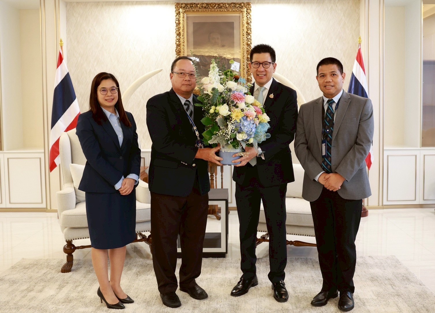 นายพีรเมศร์ วุฒิธรเนติรักษ์ ผู้อำนวยการสำนักงานความร่วมมือพัฒนาเศรษฐกิจกับประเทศเพื่อนบ้าน (องค์การมหาชน) (สพพ.) พร้อมด้วยคณะผู้บริหาร เข้าร่วมแสดงความยินดีกับ ดร. เอกนิติ นิติทัณฑ์ประภาศ รองนายกรัฐมนตรีและรัฐมนตรีว่าการกระทรวงการคลัง เนื่องในโอกาสเข้ารับตำแหน่งใหม่ ณ ห้องงาช้าง อาคาร 150 ปี กระทรวงการคลัง เมื่อวันที่ 25 กันยายน 2568