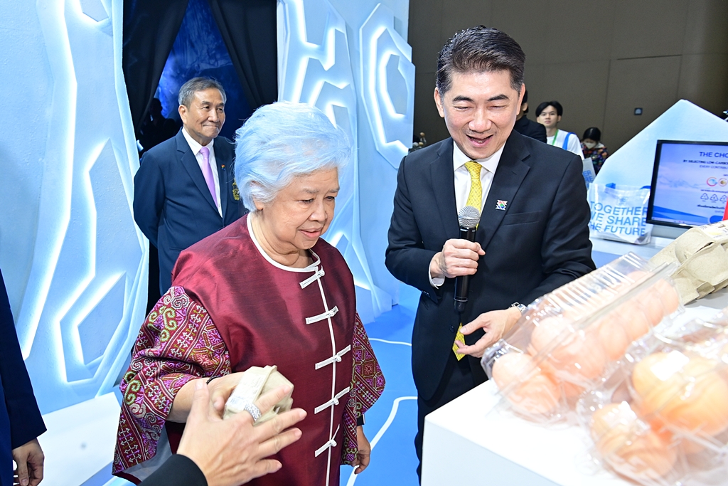 ในพิธีเปิดงาน SX2025 หม่อมหลวง จิรพันธุ์ ทวีวงศ์ กรรมการและรองเลขาธิการ มูลนิธิชัยพัฒนา พร้อมด้วย ท่านผู้หญิงบุตรี วีระไวทยะ ประธานกรรมการมูลนิธิแม่ฟ้าหลวงฯ เยี่ยมชมบูธซีพีเอฟ โดยมี นายประสิทธิ์ บุญดวงประเสริฐ ประธานคณะผู้บริหาร ซีพีเอฟ พร้อมด้วยคณะผู้บริหาร นายพีรพงศ์ กรินชัย ผู้บริหารสูงสุด สายงานวิศวกรรมกลาง และ นางกอบบุญ ศรีชัย ผู้บริหารสูงสุด สายงานกิจการองค์กร ร่วมให้การต้อนรับ