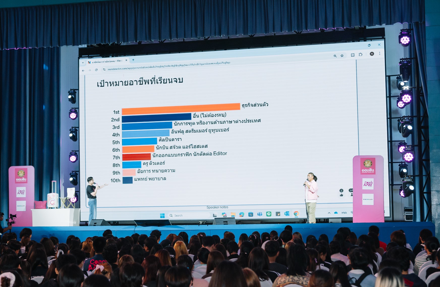 กิจกรรมโรดโชว์ “ออมสิน presents เกิด แก่ เจ็บ ยาย Play/Save เล่นจริง เก็บเงินจริง” มีจุดเด่นในการใช้เทคนิคการถ่ายทอดที่เน้น “การเรียนรู้อย่างสนุก” และ “เรียนรู้จากสิ่งใกล้ตัว” เกี่ยวกับเรื่องการเงินและการออม โดยทีมโค้ชออม จากธนาคารออมสิน และพิธีกรชื่อดัง ได้แก่ ป๋อมแป๋ม– นิติ ชัยชิตาทร, เจนนี่ ปาหนัน, ปิงปอง – ธงชัย ทองกันทม และฝน Monster Fon นำเรื่องราวและประสบการณ์จริงมาเชื่อมโยงกับการเงิน เช่น การสำรวจอาชีพในฝันของ Gen Z การใช้เทคโนโลยีสร้างรายได้ ไปจนถึงการเตรียมตัวสู่โลกการทำงาน พร้อมสอดแทรกเทคนิคการวางแผนการเงินและการออมอย่างเข้าใจง่าย จัดขึ้นใน 4 มหาวิทยาลัย ได้แก่ มหาวิทยาลัยสงขลานครินทร์ มหาวิทยาลัยราชภัฏมหาสารคาม มหาวิทยาลัยแม่ฟ้าหลวง และมหาวิทยาลัยหอการค้าไทย เพื่อกระจายโอกาสการเข้าถึงความรู้ด้านการเงินในเชิงสร้างสรรค์ให้ครอบคลุมทั่วประเทศ