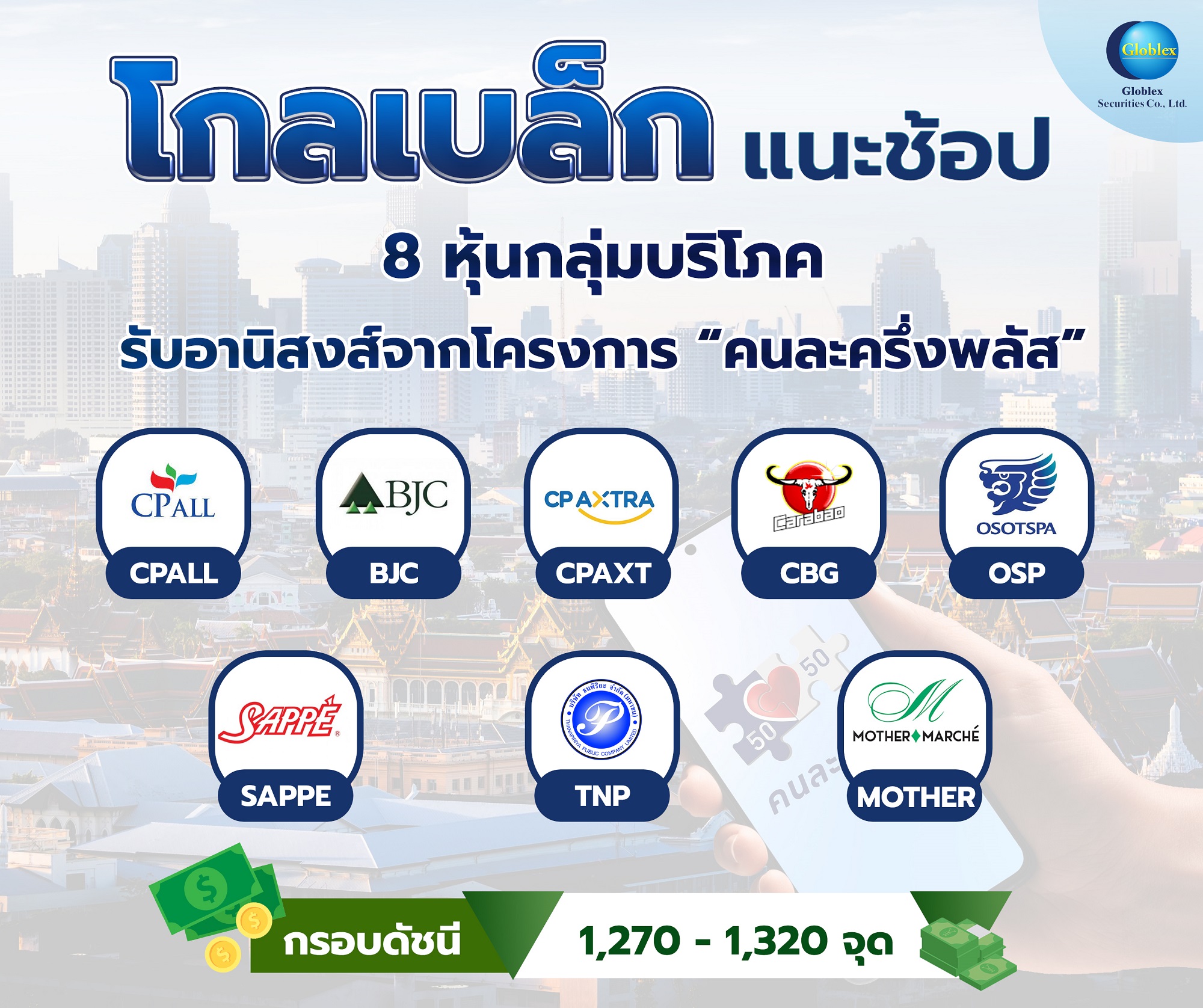 นายวัชเรนทร์ จงยรรยง ผู้อำนวยการฝ่ายวิจัย บล.โกลเบล็ก แนะนำกลยุทธ์การลงทุนในหุ้นที่ได้ประโยชน์จากการประกาศของกระทรวงการคลังถึงความพร้อมในการเดินหน้าหุ้นที่ได้ประโยชน์จากโครงการคนละครึ่งพลัสที่คาดว่าจะใช้ได้ในเดือนต.ค. นี้ โดยใช้งบประมาณ 25,000 ล้านบาท โดยหุ้นกลุ่มค้าปลีกและสินค้าอุปโภคบริโภคที่มีแนวโน้มได้รับประโยชน์โดยตรงจากมาตรการกระตุ้นเศรษฐกิจดังกล่าวได้แก่ CPALL BJC CPAXT CBG OSP SAPPE TNP และ MOTHER