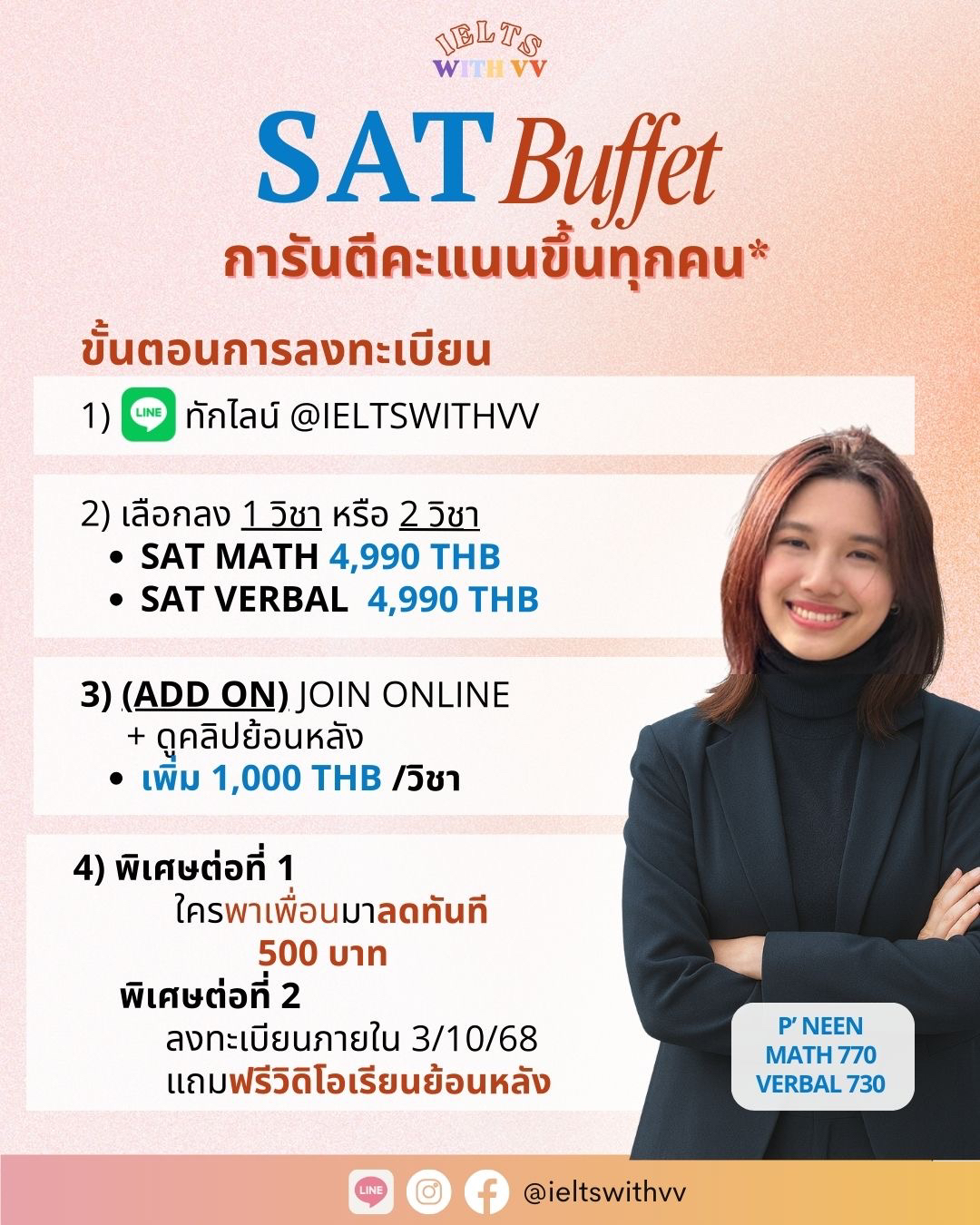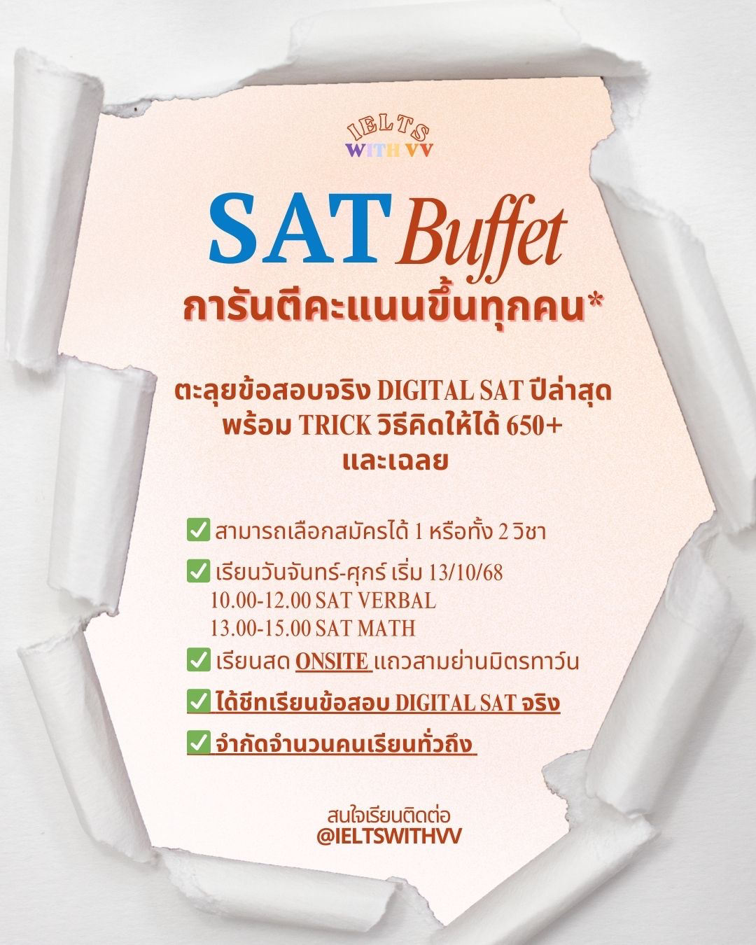 SAT Buffet เปิดคลาสแรก 13 ตุลาคม 2025 สมัครได้ที่ LINE: @ieltswithvv