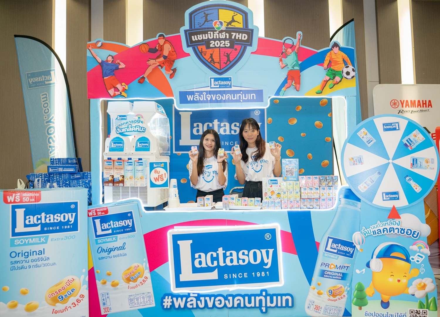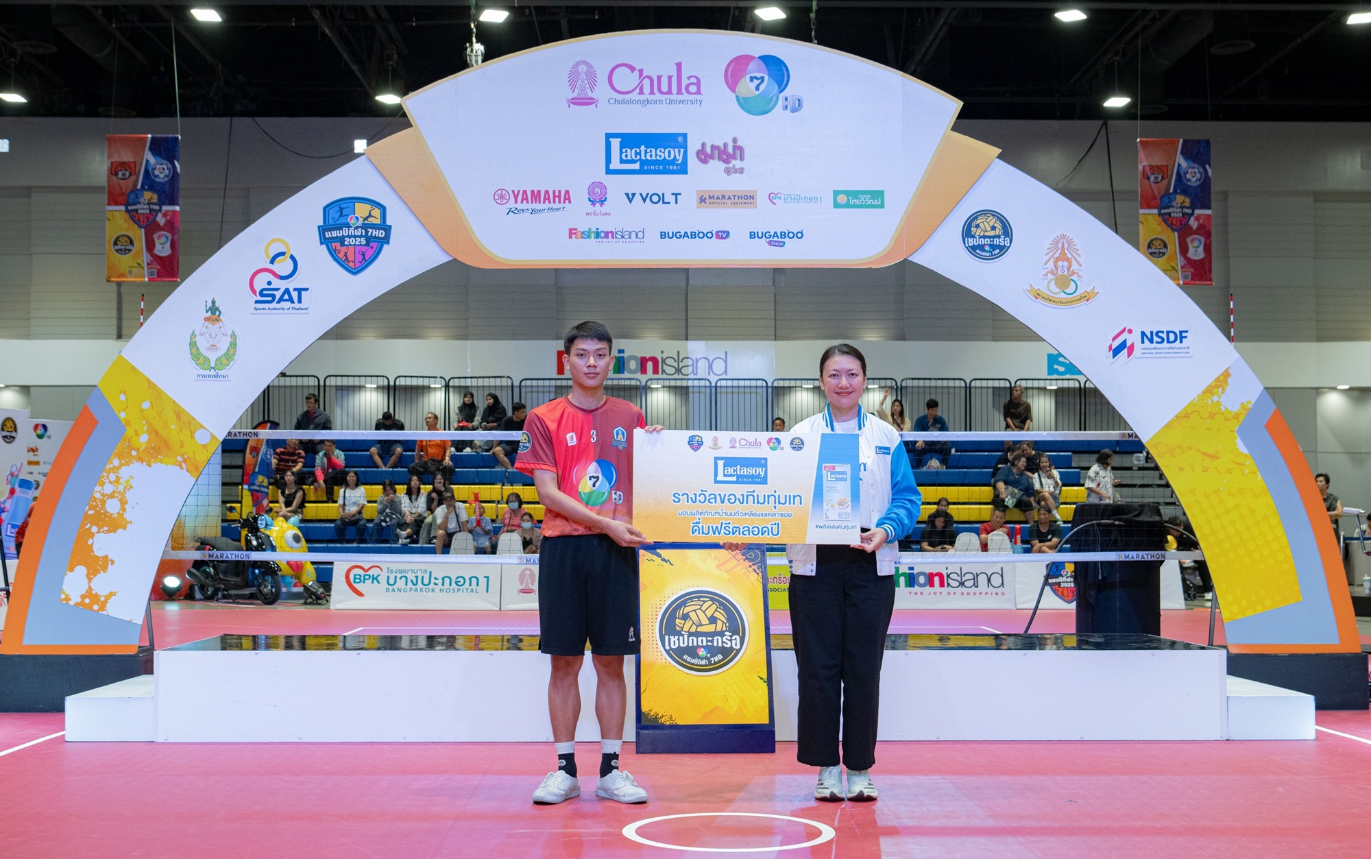 บริษัท แลคตาซอย จำกัด ผู้ผลิตและจำหน่ายผลิตภัณฑ์นมถั่วเหลืองคุณภาพ ร่วมพิธีประกาศผลและมอบรางวัลชนะเลิศ “การแข่งขันเซปักตะกร้อ นักเรียนชาย แชมป์กีฬา 7HD 2025” พร้อมมอบผลิตภัณฑ์นมถั่วเหลืองแลคตาซอยให้นักกีฬาได้ดื่มฟรีตลอดทั้งปี ณ ศูนย์การค้าแฟชั่นไอส์แลนด์ เมื่อเร็ว ๆ นี้