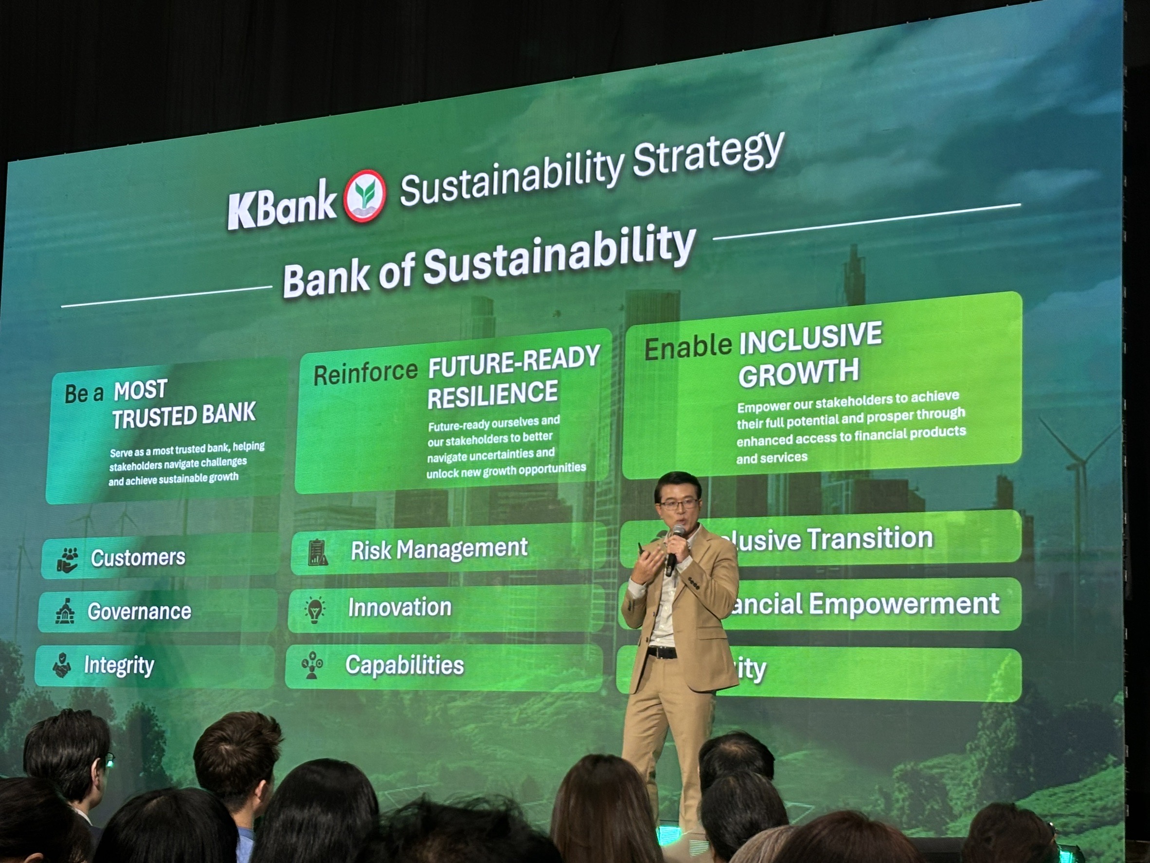 นายจงรักกล่าวตอนท้ายว่า ธนาคารกสิกรไทยดำเนินธุรกิจบนหลักการธนาคารแห่งความยั่งยืนมาอย่างต่อเนื่อง มีการบูรณาการยุทธศาสตร์ความยั่งยืนแบบองค์รวม สร้างผลกระทบเชิงบวกและวัดผลได้อย่างเป็นรูปธรรม และเน้นย้ำว่าในทุกพันธกิจที่ธนาคารขับเคลื่อนต้องอาศัยความร่วมมือจากทุกภาคส่วนที่เชื่อมโยงกันในระบบนิเวศ สร้างรากฐานที่ยืดหยุ่น แข็งแกร่ง และมีคุณภาพให้แก่ผู้มีส่วนได้เสียอย่างสมดุล เพื่อให้ทุกชีวิตและทุกธุรกิจเดินหน้าผ่านพ้นทุกความท้าทายไปด้วยกัน เติบโตต่อไปได้อีกอย่างมั่นคงและยั่งยืน