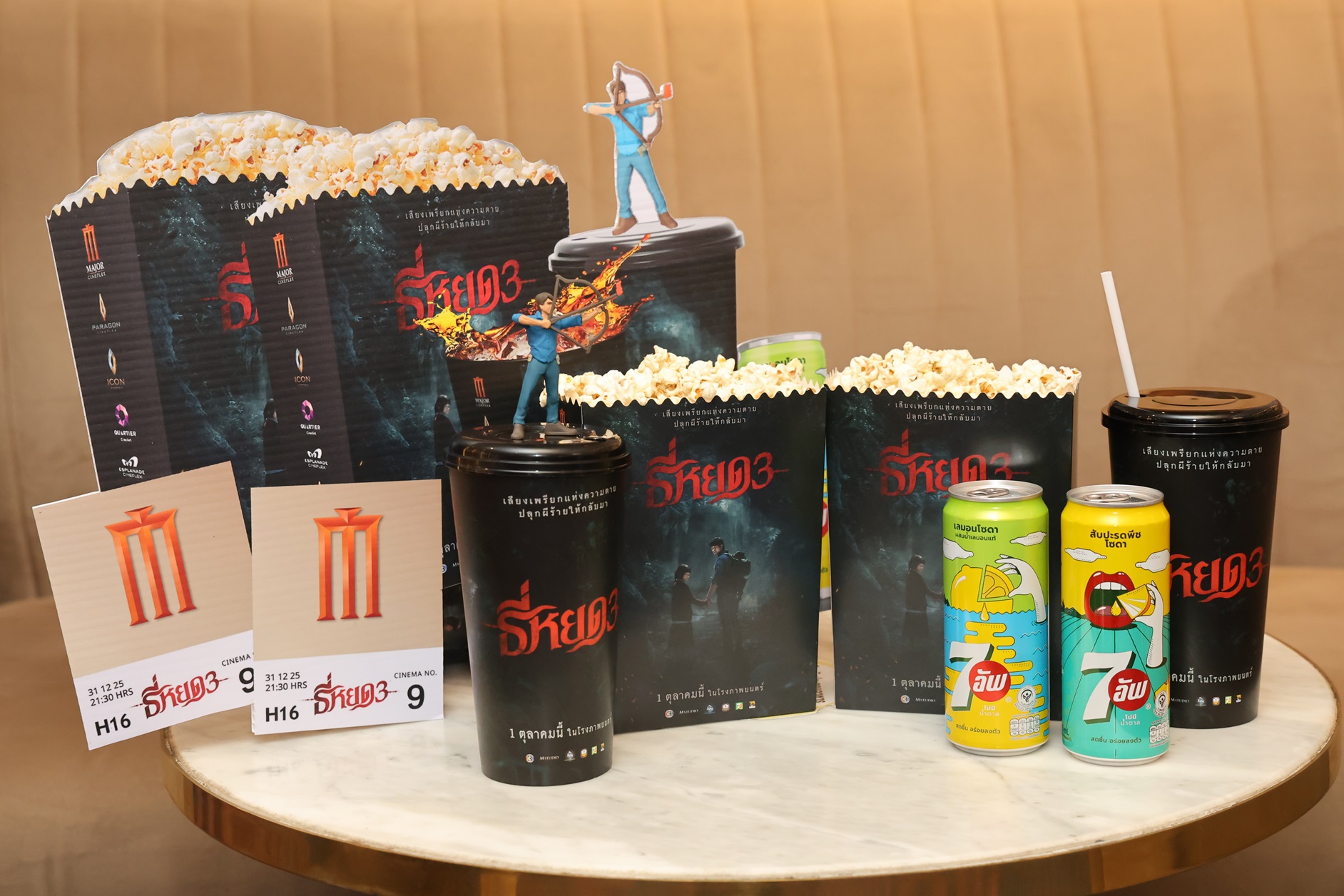 เมเจอร์ ซีนีเพล็กซ์ ร่วมกับ เครื่องดื่มเซเว่น-อัพ® โดย บริษัท ซันโทรี่ เป๊ปซี่โค เบเวอเรจ (ประเทศไทย) จำกัด ผนึกพลังแห่งความบันเทิงและความสดชื่น เปิดตัวแคมเปญสุดพิเศษ “Movie Mania” สร้างสีสันให้วงการภาพยนตร์ไทย พร้อมชวนคนรักหนังร่วมสัมผัสประสบการณ์การชมภาพยนตร์อย่างเต็มอิ่ม กับแพ็กเกจสุดคุ้ม “ธี่หยด 3” ราคาเพียง 599 บาท ที่อัดแน่นไปด้วยความคุ้มค่าและความสนุกแบบจัดเต็ม ประกอบด้วย บัตรชมภาพยนตร์ “ธี่หยด 3” จำนวน 2 ที่นั่ง, ป๊อปคอร์น ขนาด 64 ออนซ์ จำนวน 2 กล่อง, เครื่องดื่มอัดลม ขนาด 32 ออนซ์ จำนวน 2 แก้ว พร้อมหัวท็อปเปอร์ “พี่ยักษ์ ณเดชน์” สุดเอ็กซ์คลูซีฟ 1 ชิ้น และเครื่องดื่ม เซเว่น-อัพ ขนาด 325 มล. จำนวน 2 กระป๋อง มูลค่ารวมกว่า 1,130 บาท