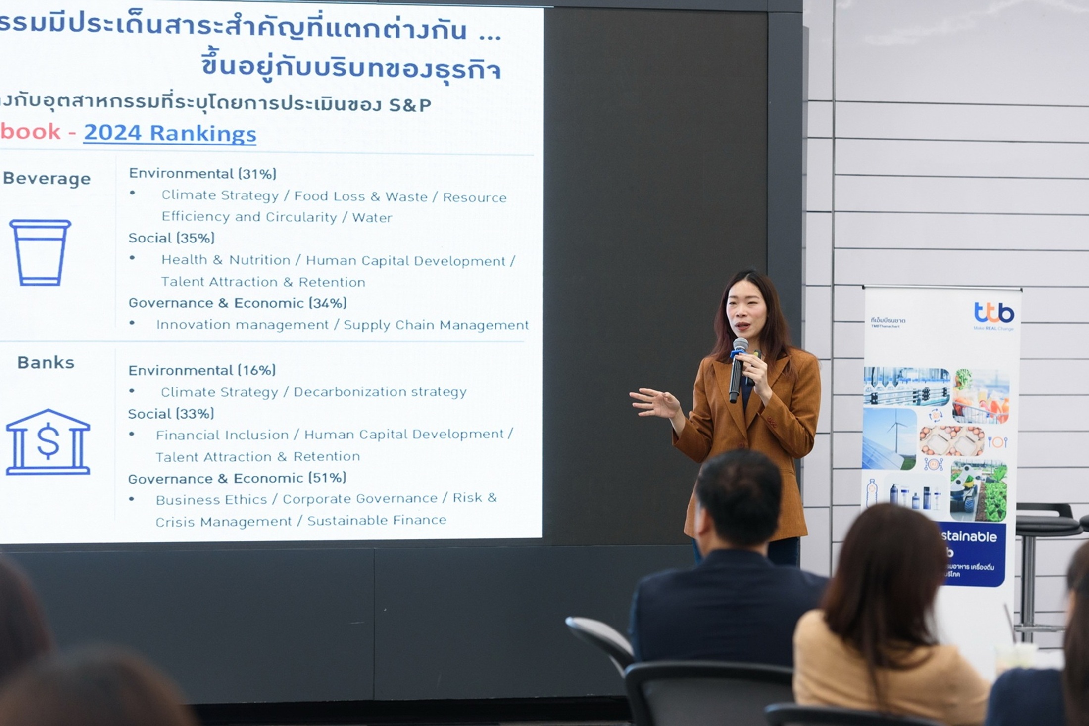 ทีเอ็มบีธนชาต หรือ ทีทีบี เสริมสร้างศักยภาพผู้ประกอบการ จัดการอบรม "LEAN for Sustainable Growth by ttb รุ่นที่ 20" หลักสูตรพัฒนาธุรกิจสำหรับผู้ประกอบการในอุตสาหกรรมอาหาร เครื่องดื่ม และสินค้าอุปโภคบริโภค มุ่งเน้นการเพิ่มประสิทธิภาพองค์กรตลอดห่วงโซ่อุปทาน (Supply Chain) ด้วยการผสานแนวคิด LEAN เข้ากับแนวทางการดำเนินธุรกิจอย่างยั่งยืนผ่าน ESG โดยมีเนื้อหาเข้มข้นจากวิทยากรผู้เชี่ยวชาญทั้งจากภาควิชาการและภาคธุรกิจ ในหัวข้อสำคัญเรื่อง "ESG ช่วยธุรกิจโดดเด่นอย่างยั่งยืน"