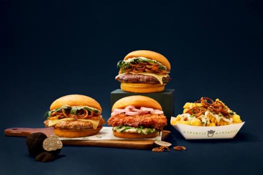 แบล็ค ทรัฟเฟิล เบอร์เกอร์ (เนื้อ) ขนมปังมันฝรั่ง แพตตี้เนื้อแองกัส ชีสสวิสหรือชีสกรูแยร์ หอมแดงทอด ผักร็อกเก็ต และ แบล็ค ทรัฟเฟิล เมโย ราคา 285 บาท (ซิงเกิ้ล) ราคา 395 บาท (ดับเบิ้ล)