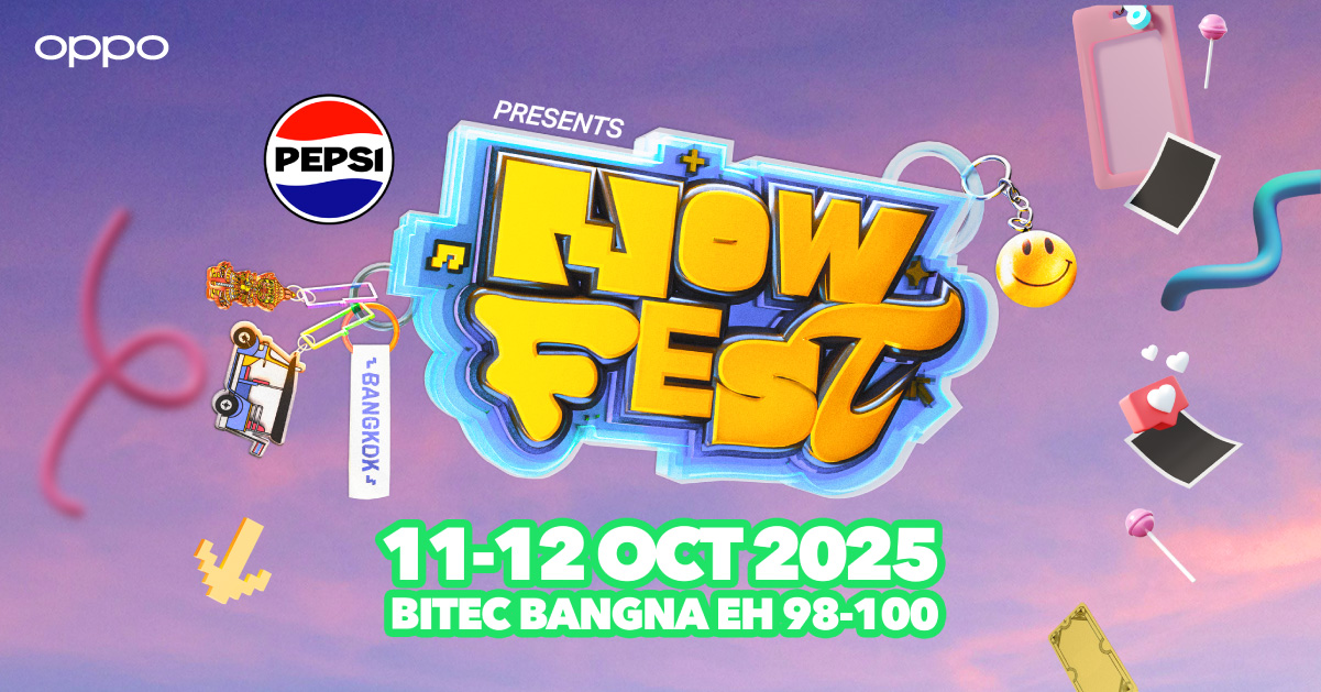 แล้วมาสร้างสีสันและแชร์ความสนุกไปด้วยกัน เตรียมร่างกายให้พร้อม ปลดปล่อยความสนุกสุดเหวี่ยงร่วมเป็นส่วนหนึ่งของความมันส์ครั้งนี้ ห้ามพลาดกับการเก็บภาพความประทับใจให้เต็มที่กับ OPPO ในงาน NOW FEST 2025! เตรียมตัวให้พร้อมรับความมันส์ วันที่ 11 - 12 ตุลาคม 2568 ณ BITEC BANGNA เท่านั้น!