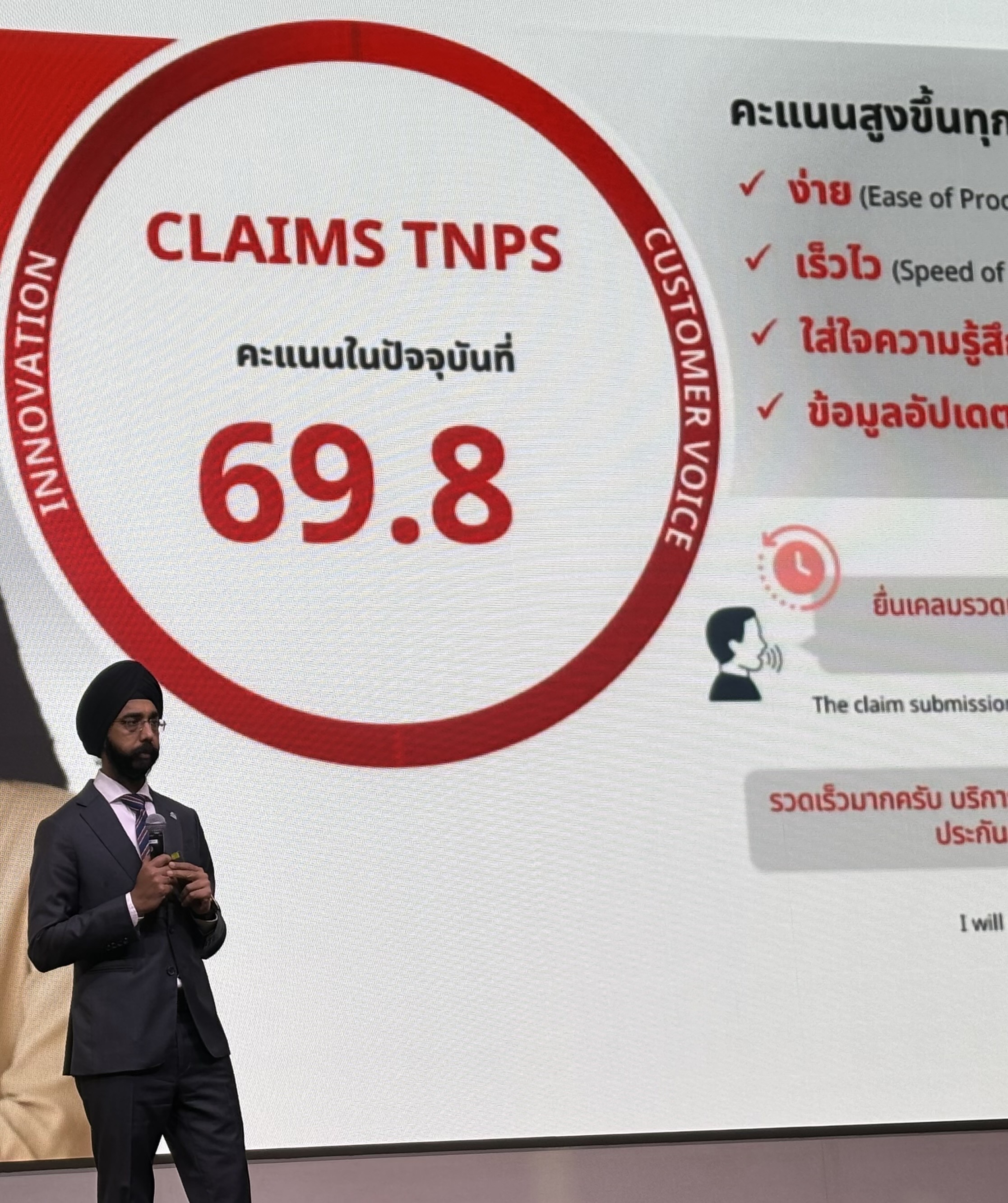ต่อด้วยส่วนสำคัญ “Customer FIRST” การยกระดับประสบการณ์ลูกค้าในทุกมิติ ทั้งการมอบผลิตภัณฑ์ที่ตอบโจทย์ความต้องการของลูกค้า ในกลุ่มประกันสุขภาพ ประกันโรคร้ายแรง ประกันเกษียณอายุ กรมธรรม์ควบการลงทุน (unit-linked) ที่ช่วยสนับสนุนการสร้างวินัยทางการเงินระยะยาว นอกจากนี้ เจนเนอราลี่ ไทยแลนด์ ยังมุ่งมั่นในการมอบประสบการณ์อันเป็นเลิศด้านการเคลม โดยมีการเคลมราว 1 ล้านครั้งต่อปี 90% ของเคลมผ่านโรงพยาบาลคู่สัญญาไม่ต้องสำรองจ่าย และมีมาตรฐานในการดำเนินการให้เสร็จสิ้นภายในเวลา 30 นาที เพื่อความสะดวกและรวดเร็วสูงสุดแก่ลูกค้า