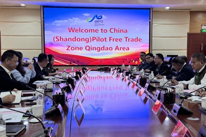 สำหรับเขตการค้าเสรีเมืองชิงเต่า (Qingdao Free Trade Zone) ถือเป็นพื้นที่สำคัญ เป็นส่วนหนึ่งของเขตการค้าเสรีนำร่องมณฑลซานตง มีพื้นที่ 52 ตารางกิโลเมตร คิดเป็นร้อยละ 43.3 ของพื้นที่เขตการค้าเสรีทั้งหมดในมณฑล ทำหน้าที่เป็นศูนย์กลางด้านการค้า โลจิสติกส์ และการเงินในภาคตะวันออกเฉียงเหนือของจีน อีกทั้งมีมูลค่าการนำเข้า–ส่งออกสูงที่สุดเมื่อเทียบกับเขตการค้าเสรีทั้ง 3 แห่งในซานตง พร้อมทั้งเร่งพัฒนาอุตสาหกรรมเกิดใหม่ เช่น การผลิตอุปกรณ์ไฮเอนด์ และวัสดุใหม่ นอกจากนี้ ยังมีพื้นที่เชื่อมต่อกับท่าเรือชิงเต่า ซึ่งเป็นศูนย์กลางนำเข้ายางพาราที่ใหญ่ที่สุดของจีน จึงทำให้เขตการค้าเสรีแห่งนี้มีบทบาทอย่างยิ่งในการ หมุนเวียนและแปรรูปสินค้ายางพารา