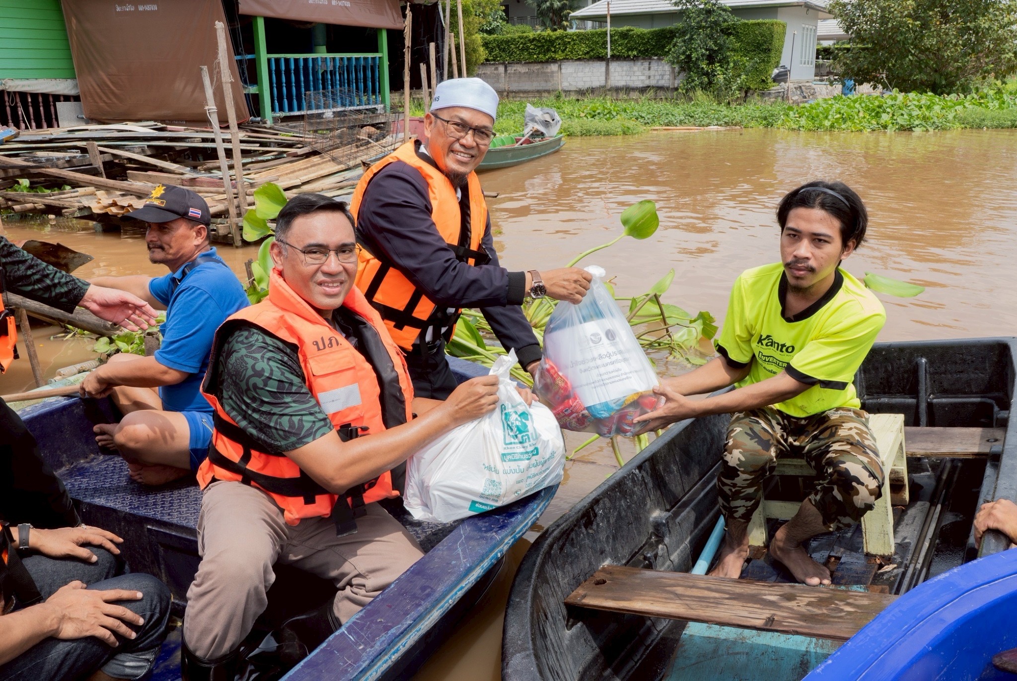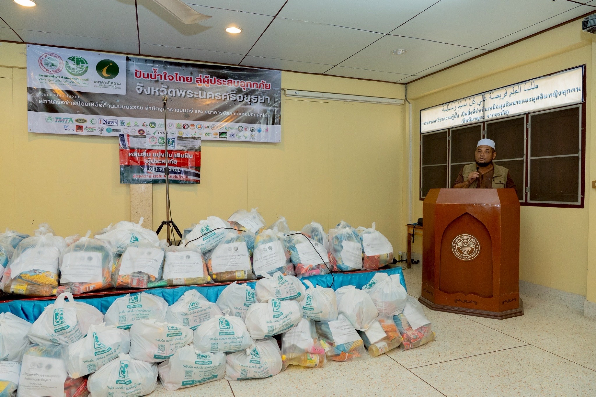 วันนี้ ( 12 ต.ค. 68 ) ธนาคารอิสลามแห่งประเทศไทย (ไอแบงก์) ร่วมกับสภาเครือข่ายช่วยเหลือด้านมนุษยธรรม สำนักจุฬาราชมนตรี และมูลนิธิคนช่วยคน จัดกิจกรรมพิธีส่งมอบถุงยังชีพช่วยเหลือพี่น้องผู้ประสบอุทกภัย จังหวัดพระนครศรีอยุธยา นำโดยคณะผู้บริหารระดับผู้ช่วยกรรมการผู้จัดการธนาคาร ประกอบด้วย นายธีระ ยีโกบ ให้เกียรติกล่าวถึงการมอบความช่วยเหลือในครั้งนี้ นายจักรี บุณยเกียรติ และนางนุจรี ภักดีเจริญ ให้เกียรติเข้าร่วมงาน และนายอิสมาแอน หมัดอะด้ำ รองประธานสภาเครือข่ายช่วยเหลือด้านมนุษยธรรม สำนักจุฬาราชมนตรี กล่าวรายงานวัตถุประสงค์ โดยได้รับเกียรติจาก นายประดิษฐ์ รัตนโกมล ประธานคณะกรรมการอิสลามประจำจังหวัดพระนครศรีอยุธยา กล่าวต้อนรับ นายดำรง พุฒตาล ที่ปรึกษาประธานรัฐสภา และพ.อ.อนันต์ รื่นพิทักษ์ อีหม่ามมัสยิดนูรุ้ลเอี๊ยะซาน ร่วมกล่าวขอบคุณ พร้อมด้วย นายสุรศักดิ์ จำลองกุล ประชาสัมพันธ์จังหวัดพระนครศรีอยุธยา กรรมการอิสลามประจำจังหวัดพระนครศรีอยุธยาให้เกียรติร่วมเข้าร่วมงาน พร้อมด้วยชาวบ้านและพี่น้องสัปปุรุษ รวม 200 ครอบครัวเข้าร่วกิจกรรมรับมอบถุงยังชีพในโอกาสนี้ ณ มัสยิดนูรุ้ลเอี๊ยะซาน ตำบลบ้านพลับ อำเภอบางปะอิน จังหวัดพระนครศรีอยุธยา