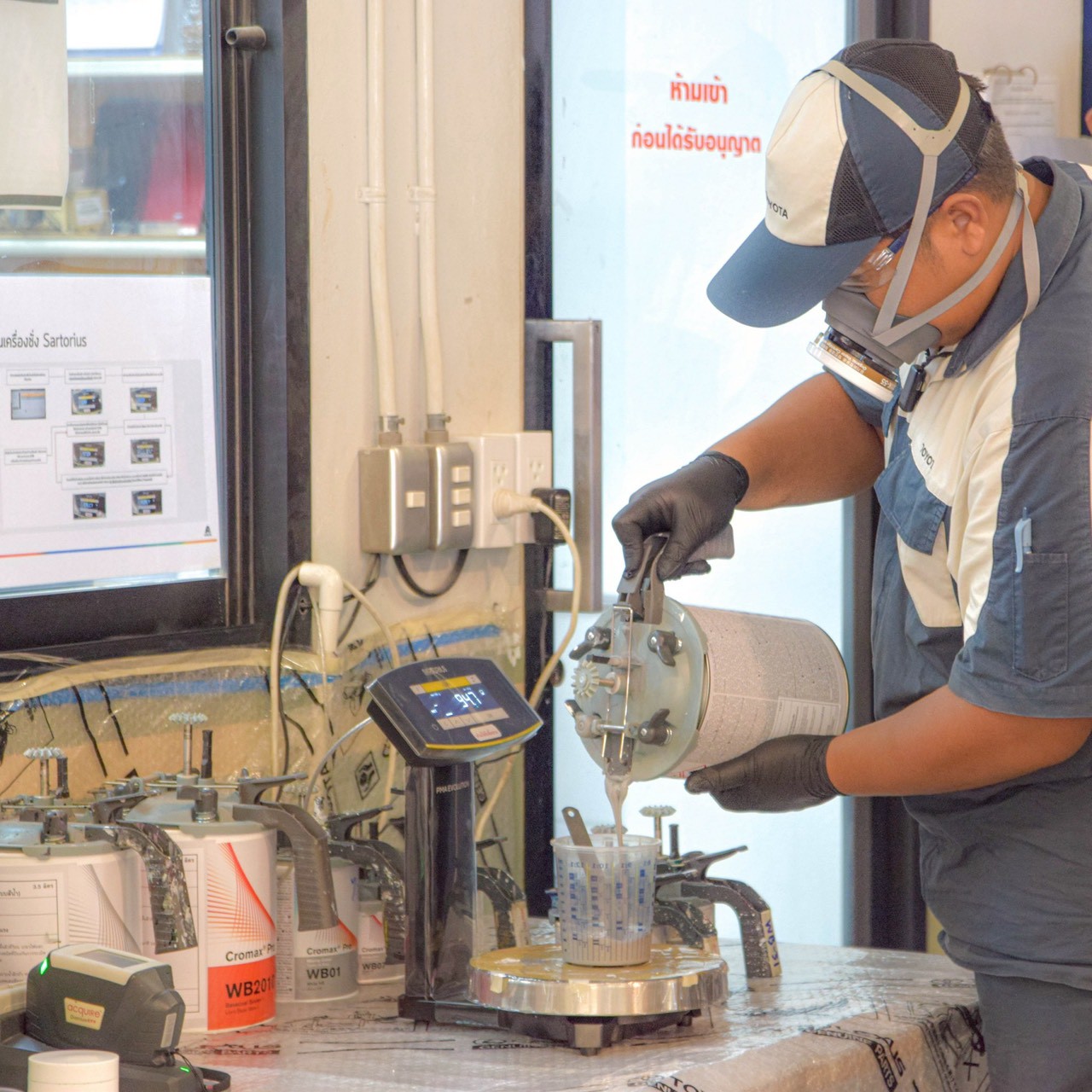 การสาธิตขั้นตอนปฏิบัติงานจริง เช่น การเปิด Job Card, การตัดปริมาณสี, การนำสต๊อกเข้าสู่ระบบ และงาน Non-Paint