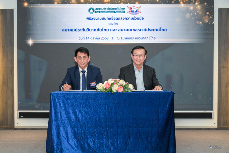เมื่อวันที่ 14 ตุลาคม 2568 สมาคมประกันวินาศภัยไทย และสมาคมเซอร์เวย์ประเทศไทย จัดพิธีลงนามบันทึกข้อตกลง (MOU) เรื่อง “ความร่วมมือเพื่อกำหนดรูปแบบมาตรฐานการปฏิบัติงานของเจ้าหน้าที่สำรวจภัยของบริษัทสำรวจภัย” เพื่อร่วมกันยกระดับคุณภาพและศักยภาพของเจ้าหน้าที่สำรวจภัยในประเทศไทย ให้สอดคล้องกับมาตรฐานวิชาชีพ และตอบสนองต่อความต้องการของระบบประกันภัยรถยนต์ในปัจจุบันอย่าง มีประสิทธิภาพ โดยได้รับเกียรติจาก ดร.สมพร สืบถวิลกุล นายกสมาคมประกันวินาศภัยไทย และนายชำนาญ ชาติพจน์ นายกสมาคมเซอร์เวย์ประเทศไทย ร่วมลงนามในฐานะผู้แทนของทั้งสองสมาคม โดยมีนายเสรี กวินรัชตโรจน์ ประธานคณะกรรมการประกันภัยยานยนต์ สมาคมประกันวินาศภัยไทย และนายจำนงค์ สิงหา ประธานชมรมผู้ประกอบวิชาชีพตรวจสอบความเสียหาย ร่วมลงนามเป็นสักขีพยาน ณ สมาคมประกันวินาศภัยไทย