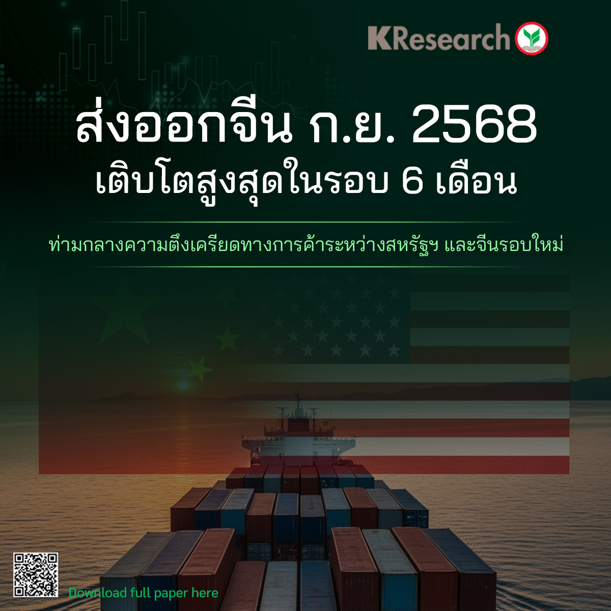 ทั้งนี้ ติดตามการประกาศตัวเลข GDP ไตรมาส 3/2568 ของจีนในวันที่ 20 ต.ค.68 นี้ และจีนจะเริ่มมีการประชุม 4th plenum ในวันที่ 20-23 ต.ค.68 โดยคาดว่าจะมีการเปิดเผยแผนพัฒนาเศรษฐกิจ และสังคมแห่งชาติฉบับที่ 15