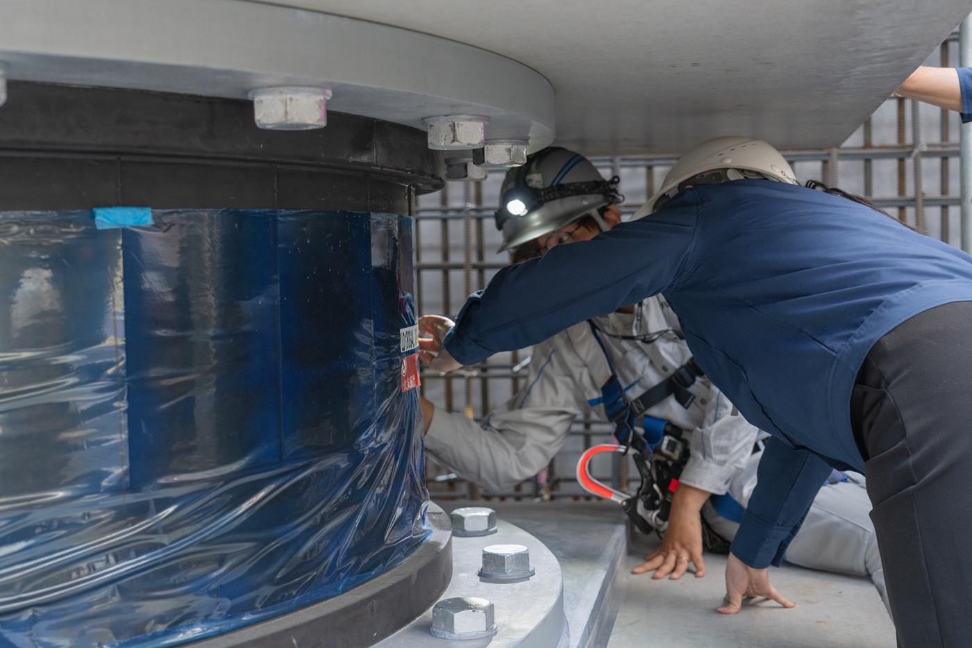 2. การก่อสร้างคอนโดมิเนียมที่ใช้ระบบ SEISMIC ISOLATION STRUCTURE (ระบบโครงสร้างแยกแผ่นดินไหว) ในขนาดที่ใหญ่และมากที่สุด ตัวแทนนิสิตนักศึกษาโครงการ AP OPEN HOUSE รุ่นที่ 10 ได้รับโอกาสพิเศษในการศึกษาเทคโนโลยีนี้อย่างใกล้ชิด ซึ่งช่วยดูดซับแรงสั่นไหวและลดความรุนแรงต่อผู้อยู่อาศัยในอาคารสูง การออกแบบดังกล่าวเป็นมากกว่านวัตกรรมด้านโครงสร้าง แต่เป็นการส่งมอบความสบายใจและความมั่นใจสูงสุด ให้แก่ผู้อยู่อาศัยในคอนโดมิเนียมอาคารสูงในประเทศญี่ปุ่น ซึ่งเป็นประเทศที่มีการบันทึกเหตุการณ์แผ่นดินไหวมากที่สุดแห่งหนึ่งของโลก