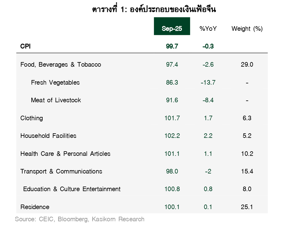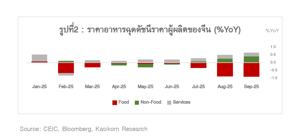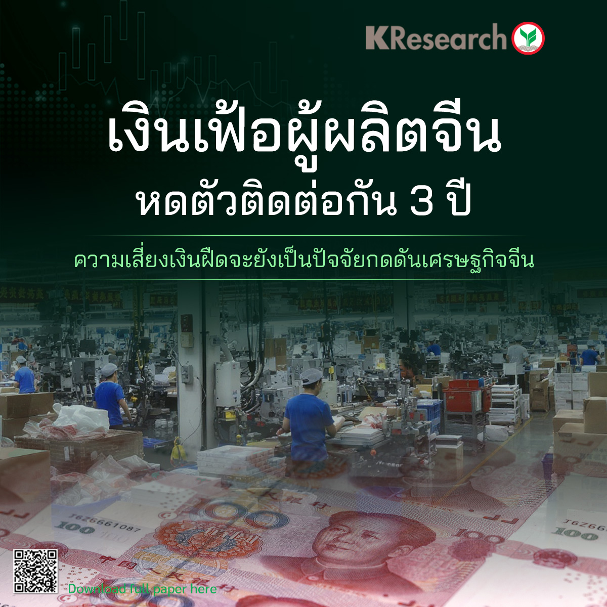 ศูนย์วิจัยกสิกรไทยมองว่าในระยะข้างหน้าปัญหาเงินฝืดจะยังเป็นปัจจัยกดดันเศรษฐกิจจีน แม้ทางการจะทยอยออกนโยบายมาเพื่อแก้ไขปัญหากำลังการผลิตส่วนเกิน แต่สถานการณ์สงครามการค้าที่ตึงเครียดขึ้น และยังมีความไม่แน่นอนสูงจะยังเป็นปัจจัยที่ทำให้สินค้าบางส่วนถูกนำมาลดราคาในจีนสะท้อนจากดัชนีราคาผู้ผลิตในส่วนของสินค้าบริโภคยังคงอยู่ในระดับต่ำ นอกจากนี้ ปัญหาในภาคอสังหาริมทรัพย์ที่ยังคงอยู่จะยังฉุดรั้งความเชื่อมั่นผู้บริโภคในจีน ขณะที่มาตรการกระตุ้นเศรษฐกิจในส่วนของการบริโภคขนาดใหญ่คาดยังไม่เกิดขึ้น